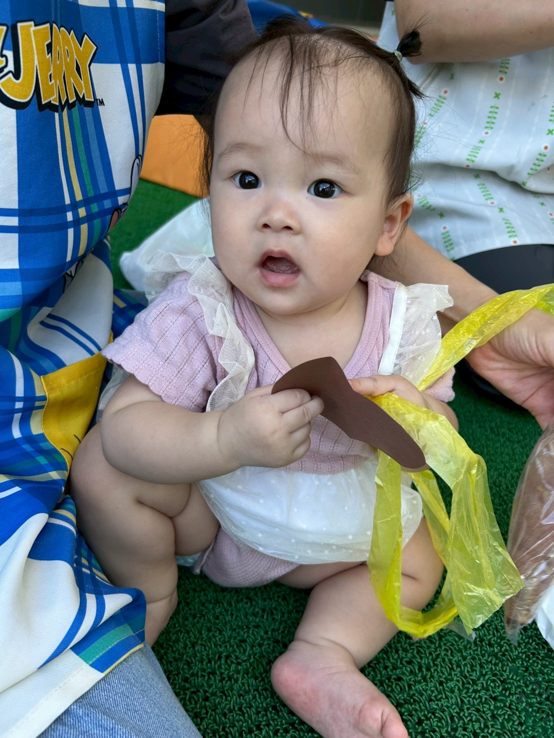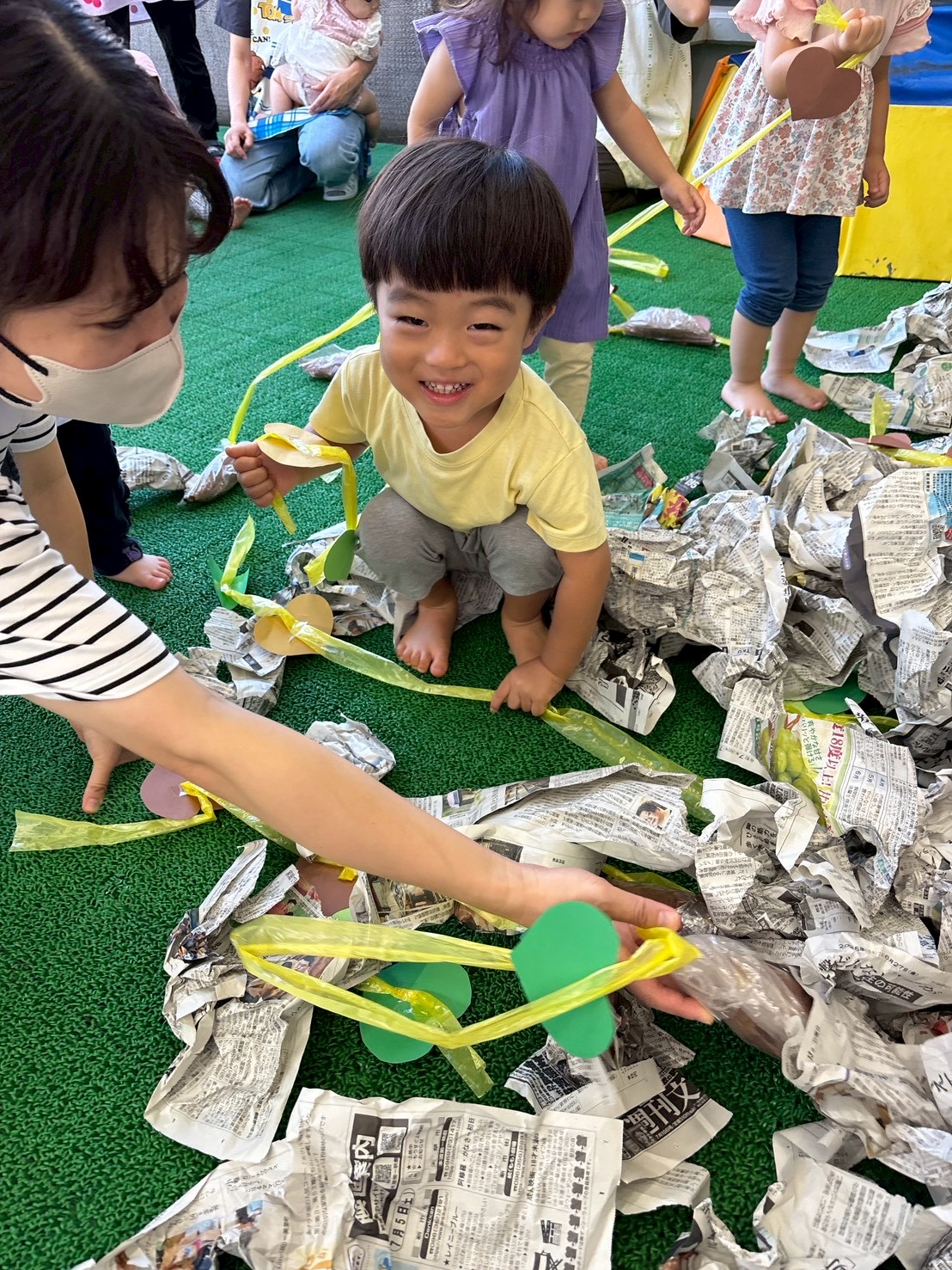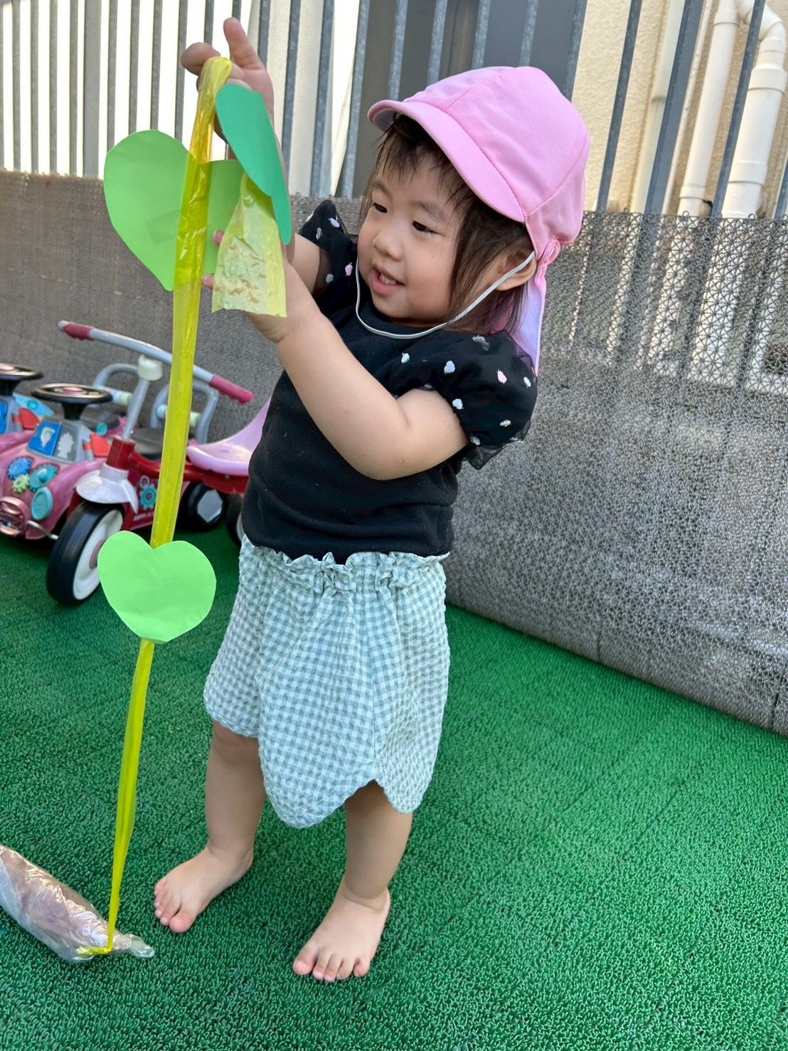 0歳児のお友だちは、はじめてお芋を見たのかもしれませんね。ちょっと困り顔。