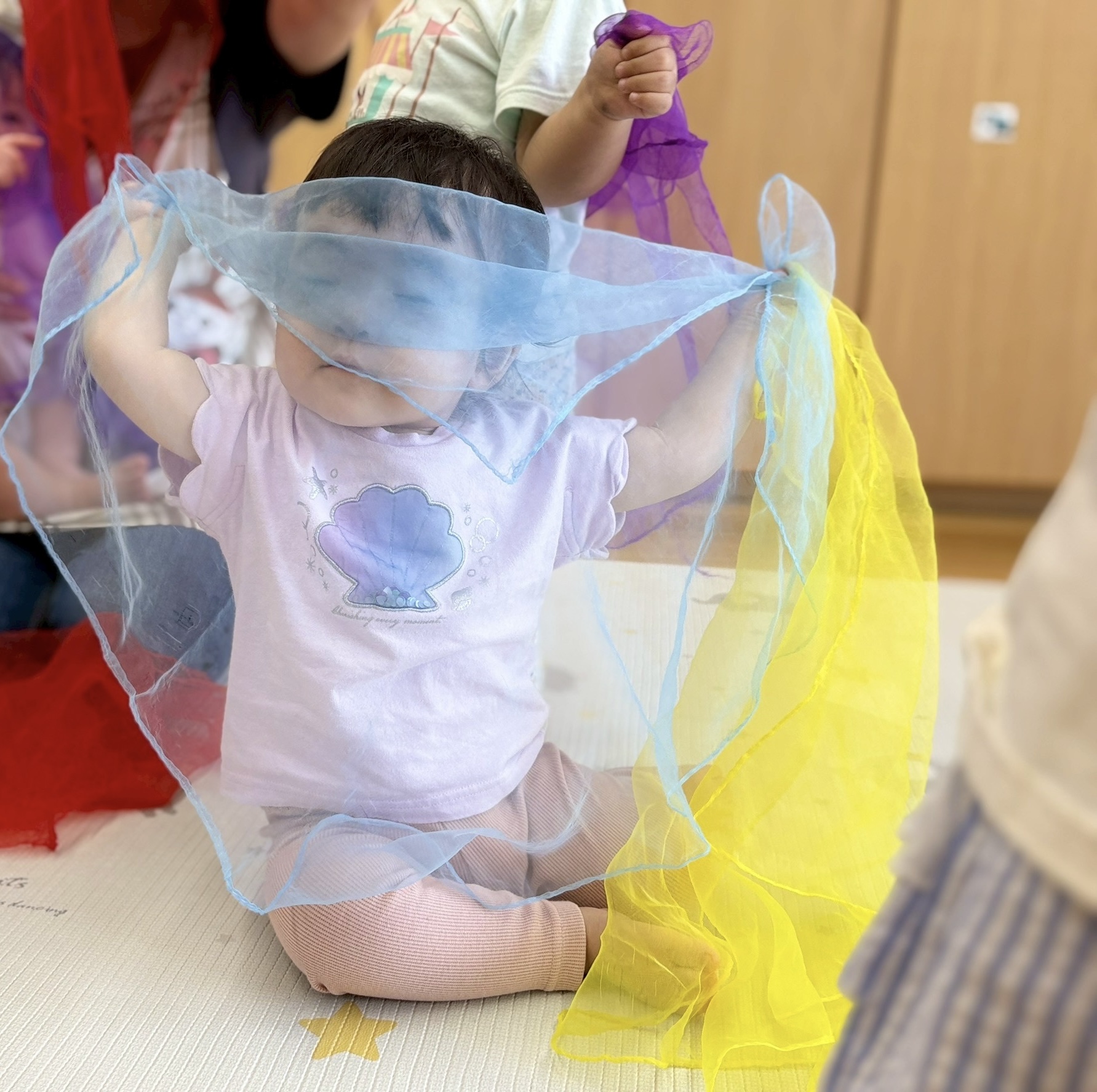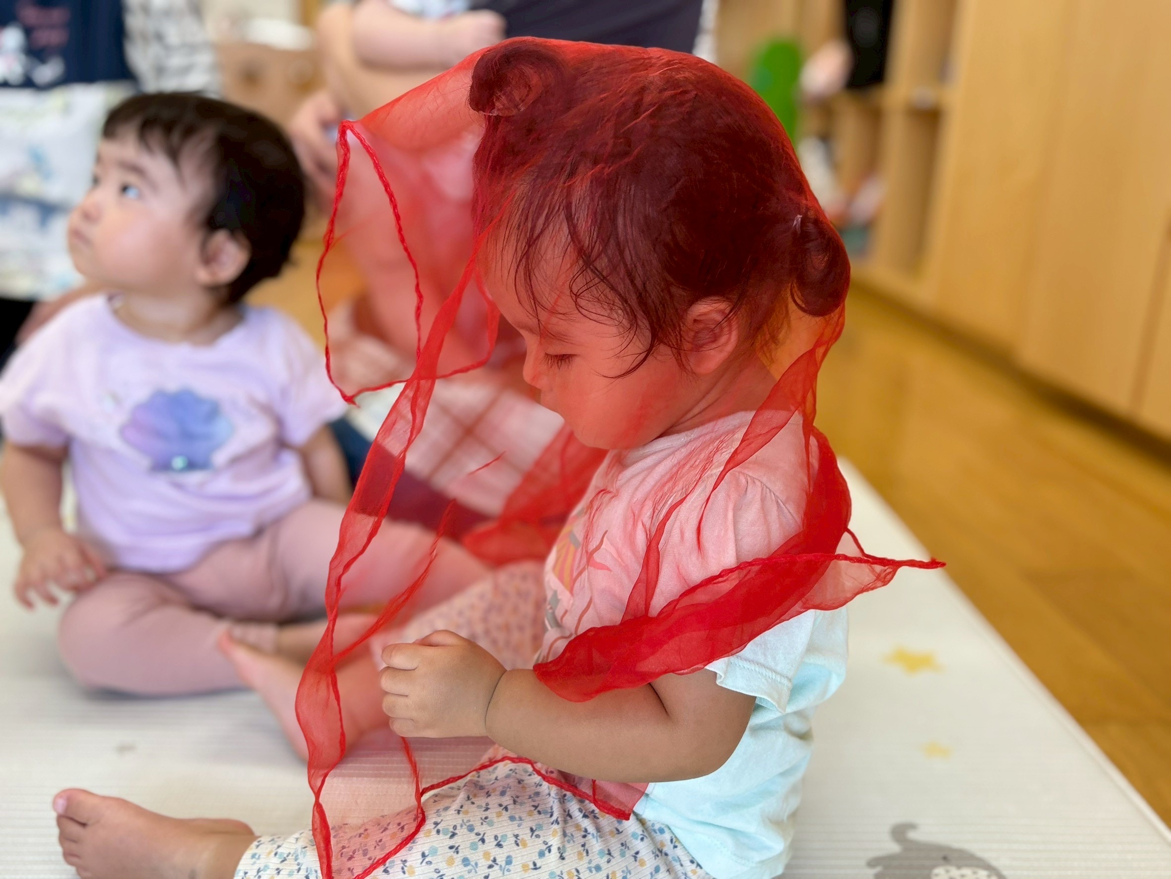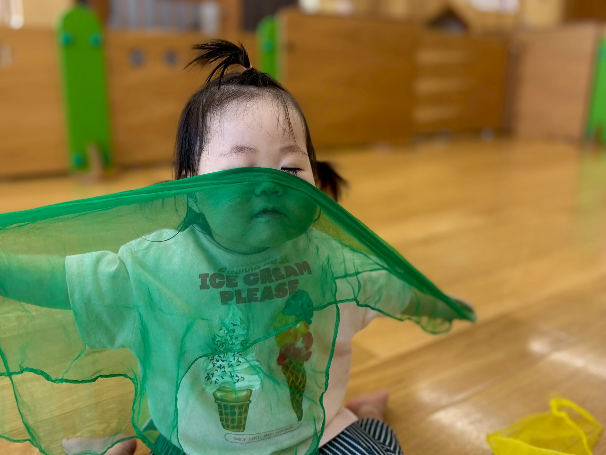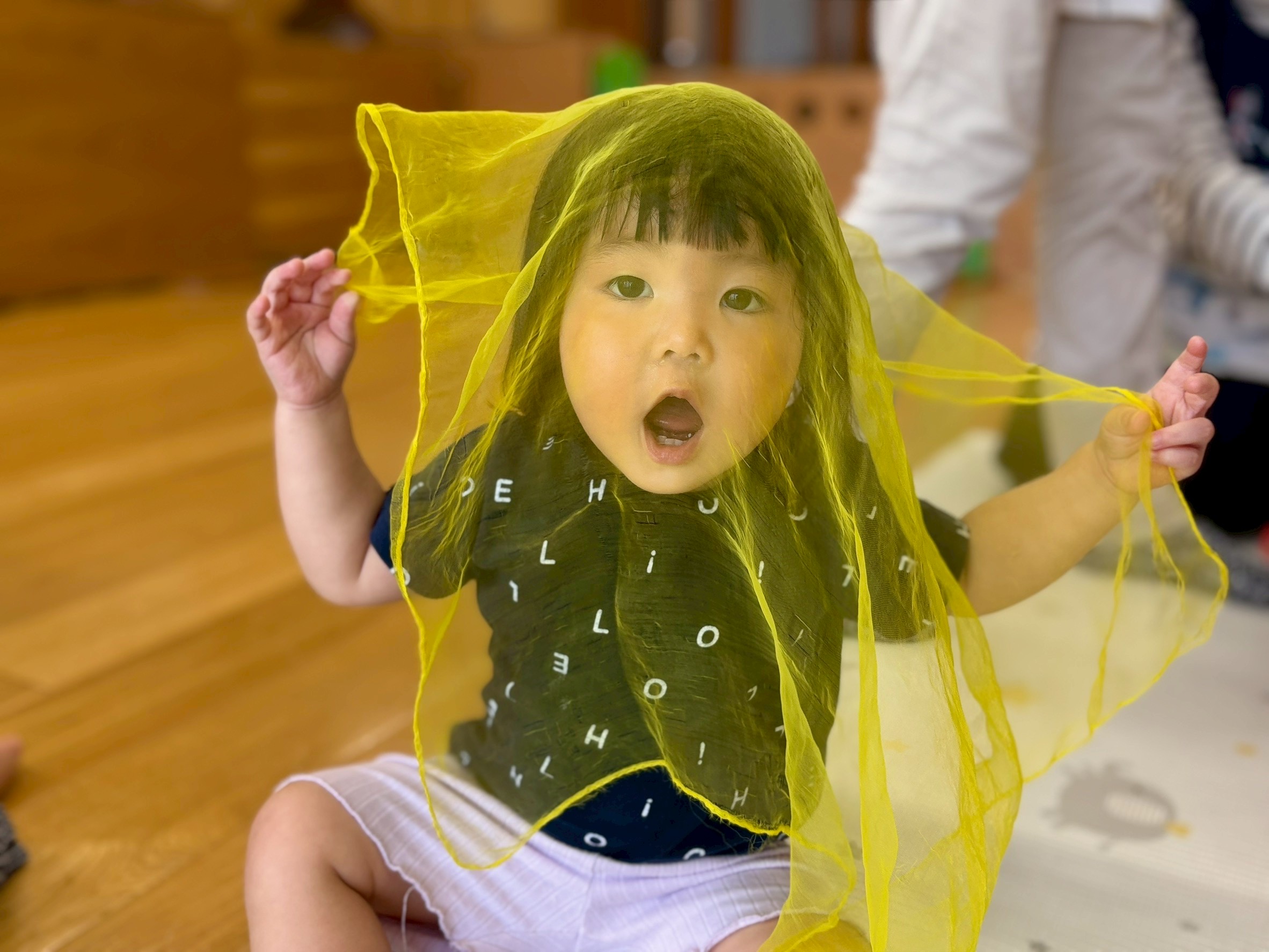 そんなオーガンジーとお友だちになる為に、みんなが大好き「いないいないばあ」をやってみました。
