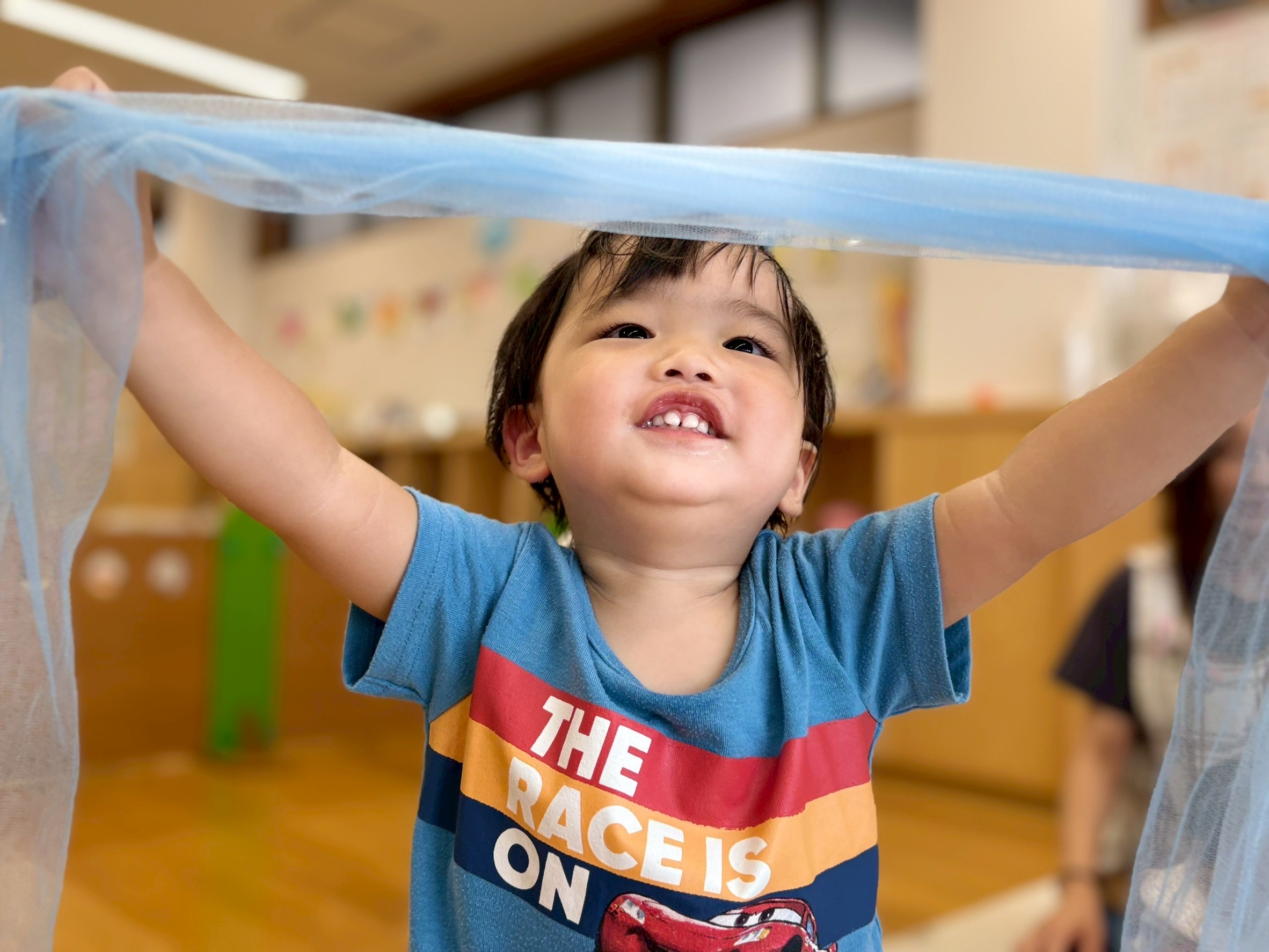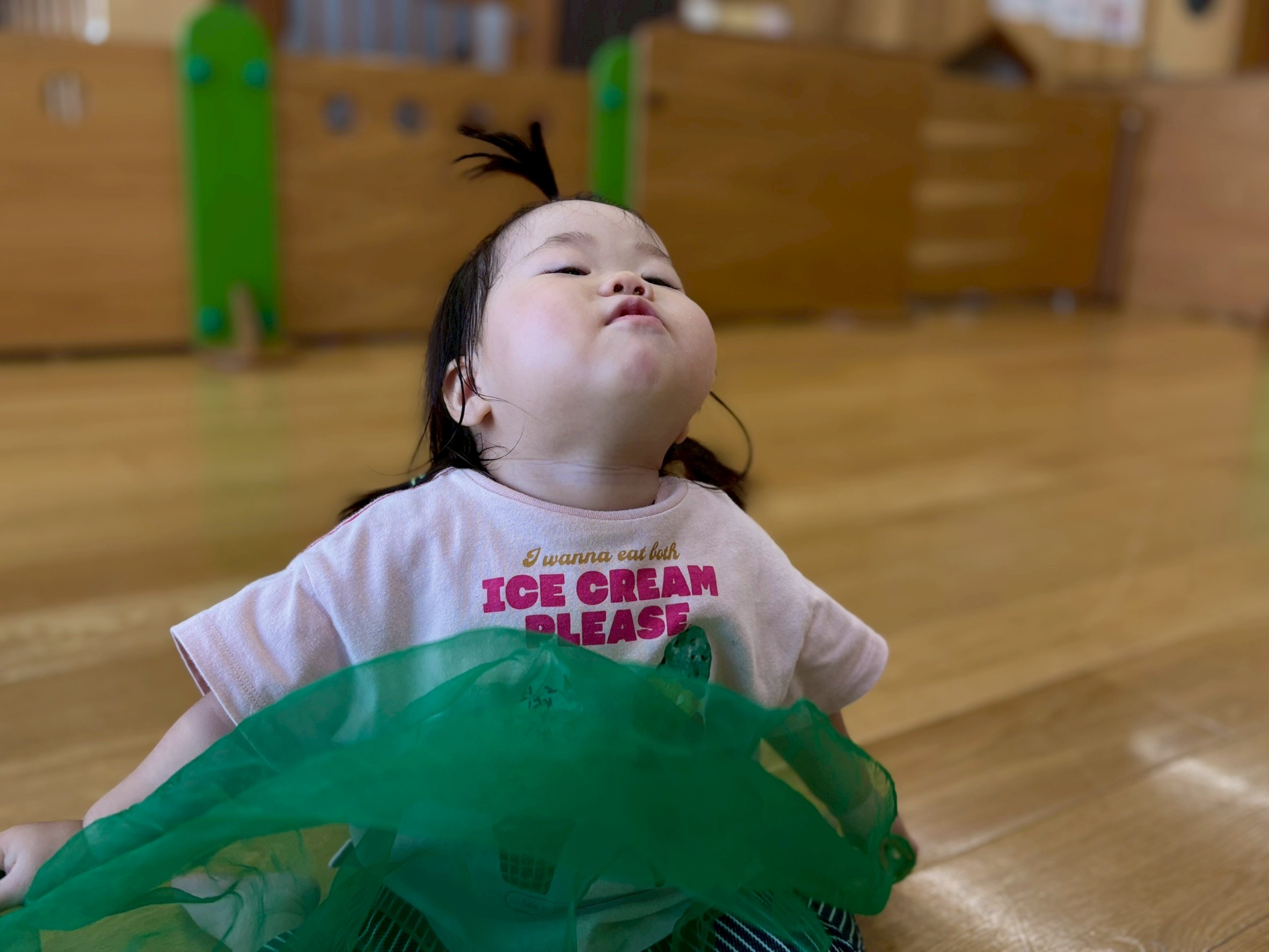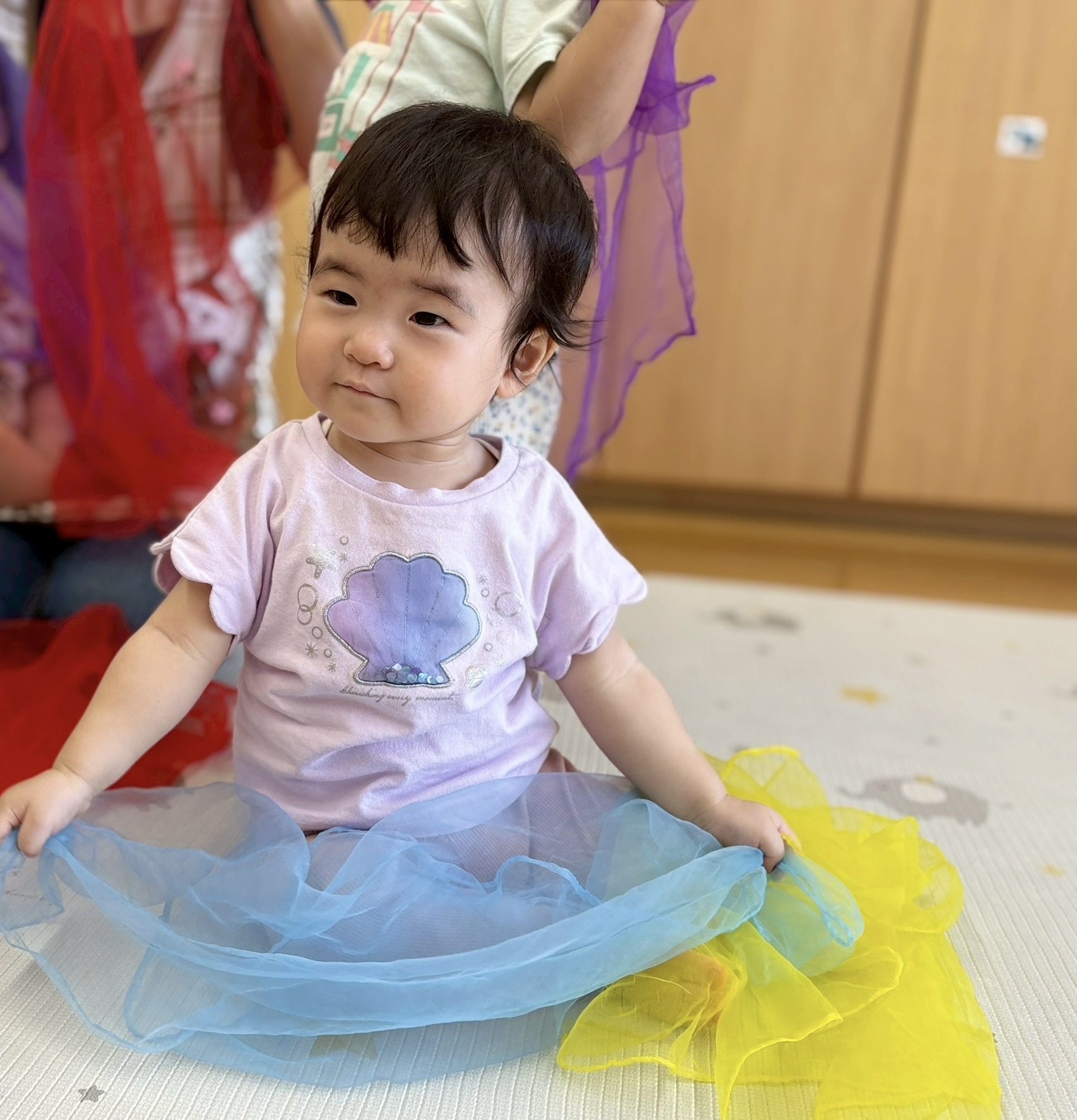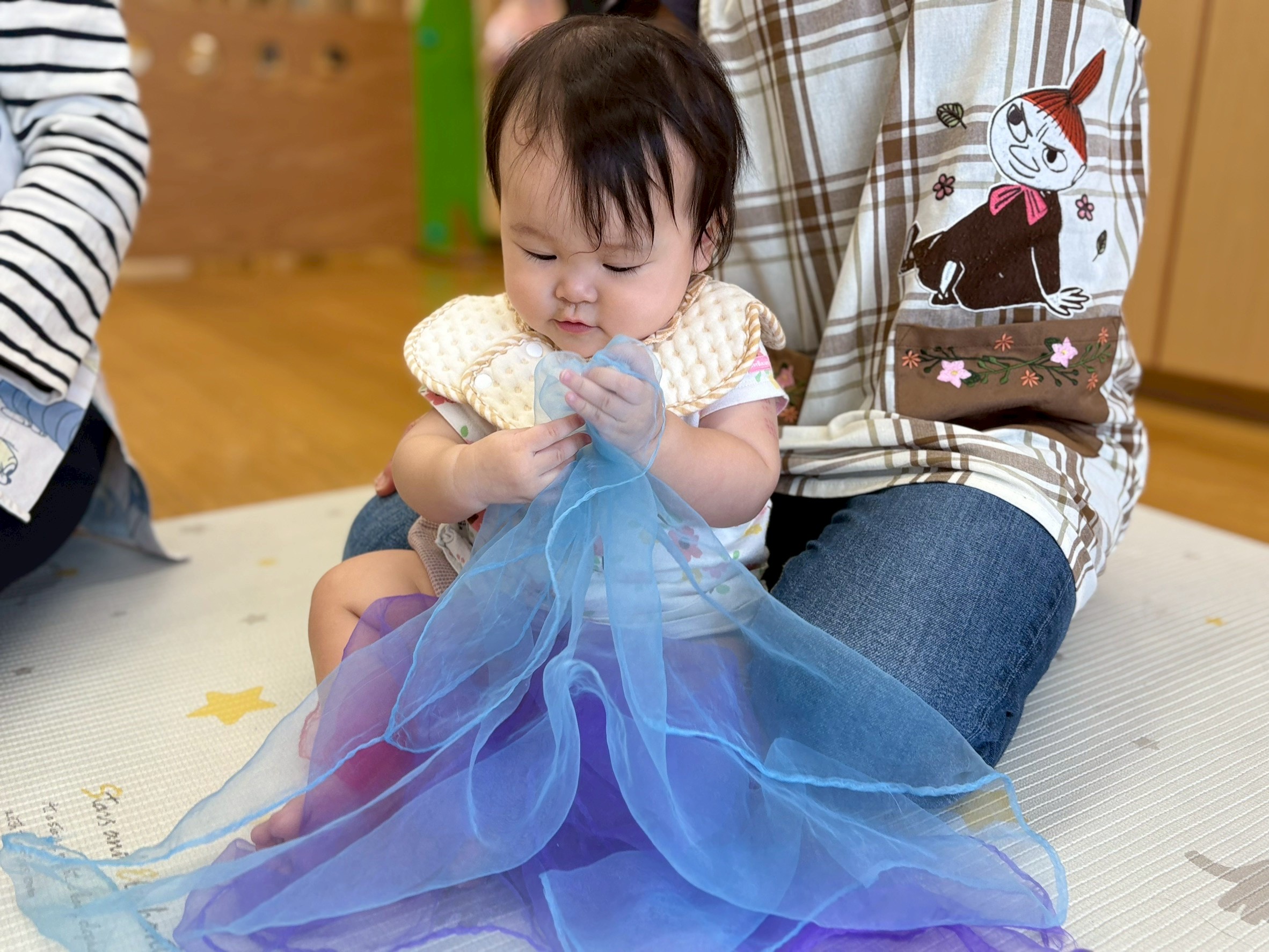 そんなオーガンジーとお友だちになる為に、みんなが大好き「いないいないばあ」をやってみました。