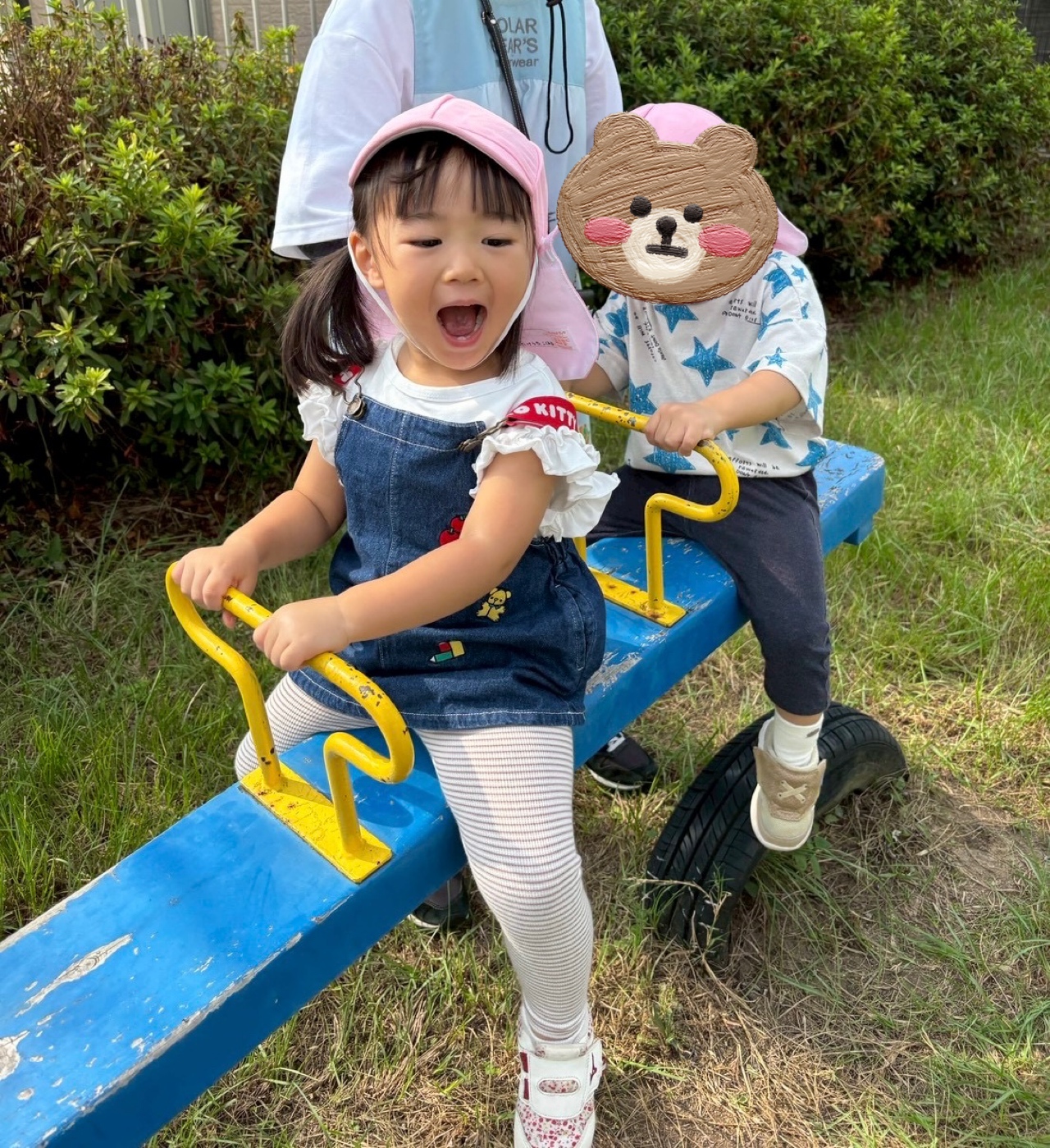 2025.10.16 シーソー🌸 久しぶりにまちの広場に行くと シーソーが大人気✨ トンっとお尻が浮く感じが楽しくて 声を上げて笑います😆 お友だちと一緒に乗って遊べることも 1つの楽しみかもしれませんね😊🎵