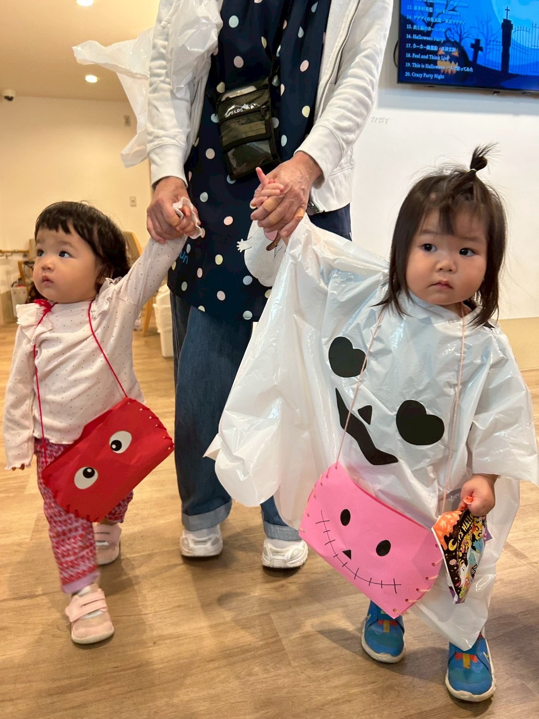 2025.10.31 🎃ハッピーハロウィン🍑 ケアプラスの水前寺にある施設にお邪魔させてもらいました。 ハロウィンの飾りがたくさんあって、子どもたちは大喜び。 でも、初めての場所、初めて会うおじいちゃん、おばあちゃんたちに緊張してしまいました。 たくさんのお菓子をありがとうございました。 また遊びに行きます。
