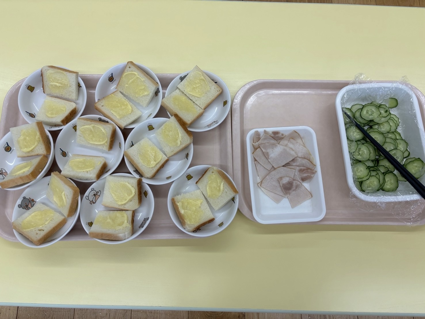 午後のおやつはサンドイッチを自分たちで作りました🥪