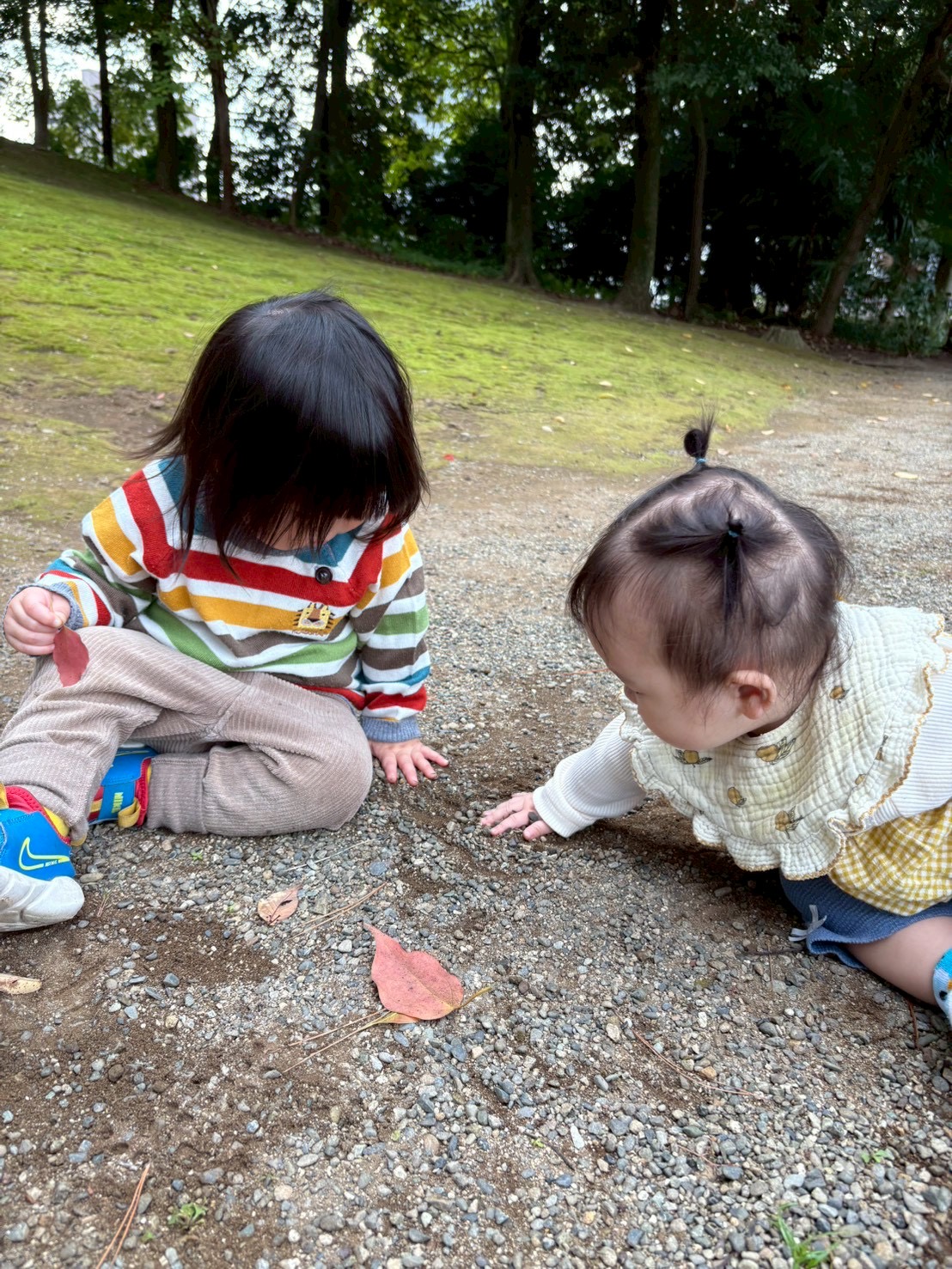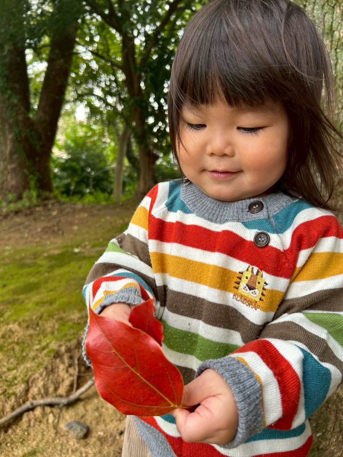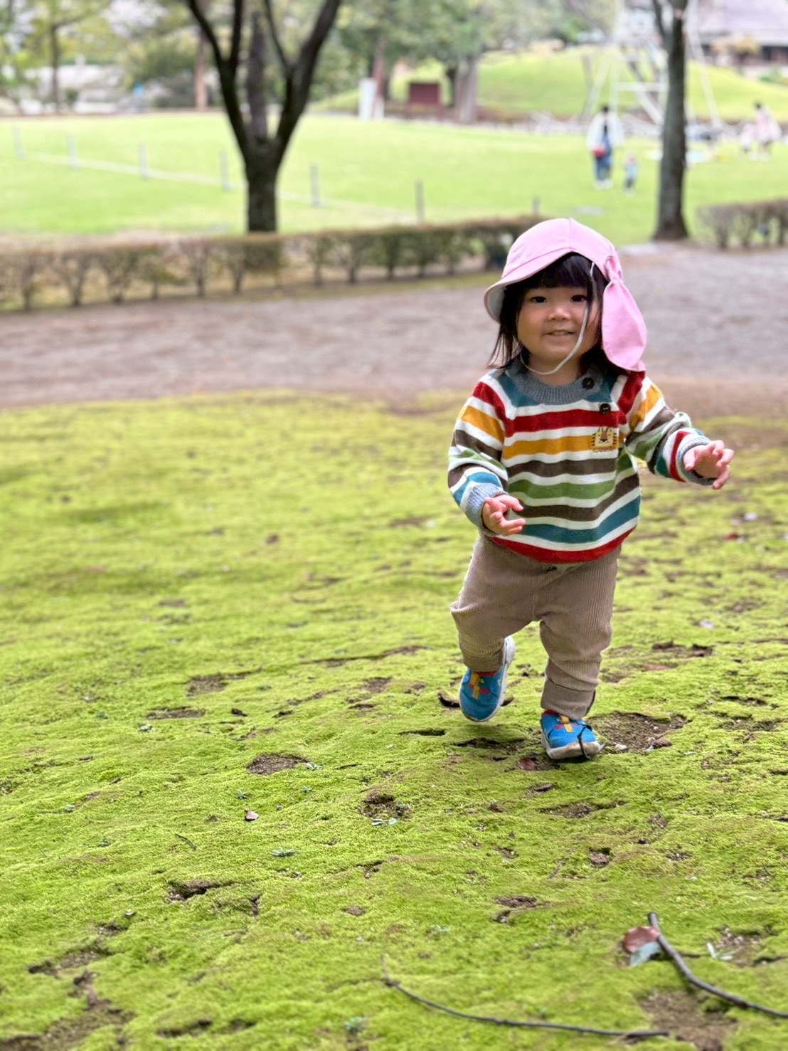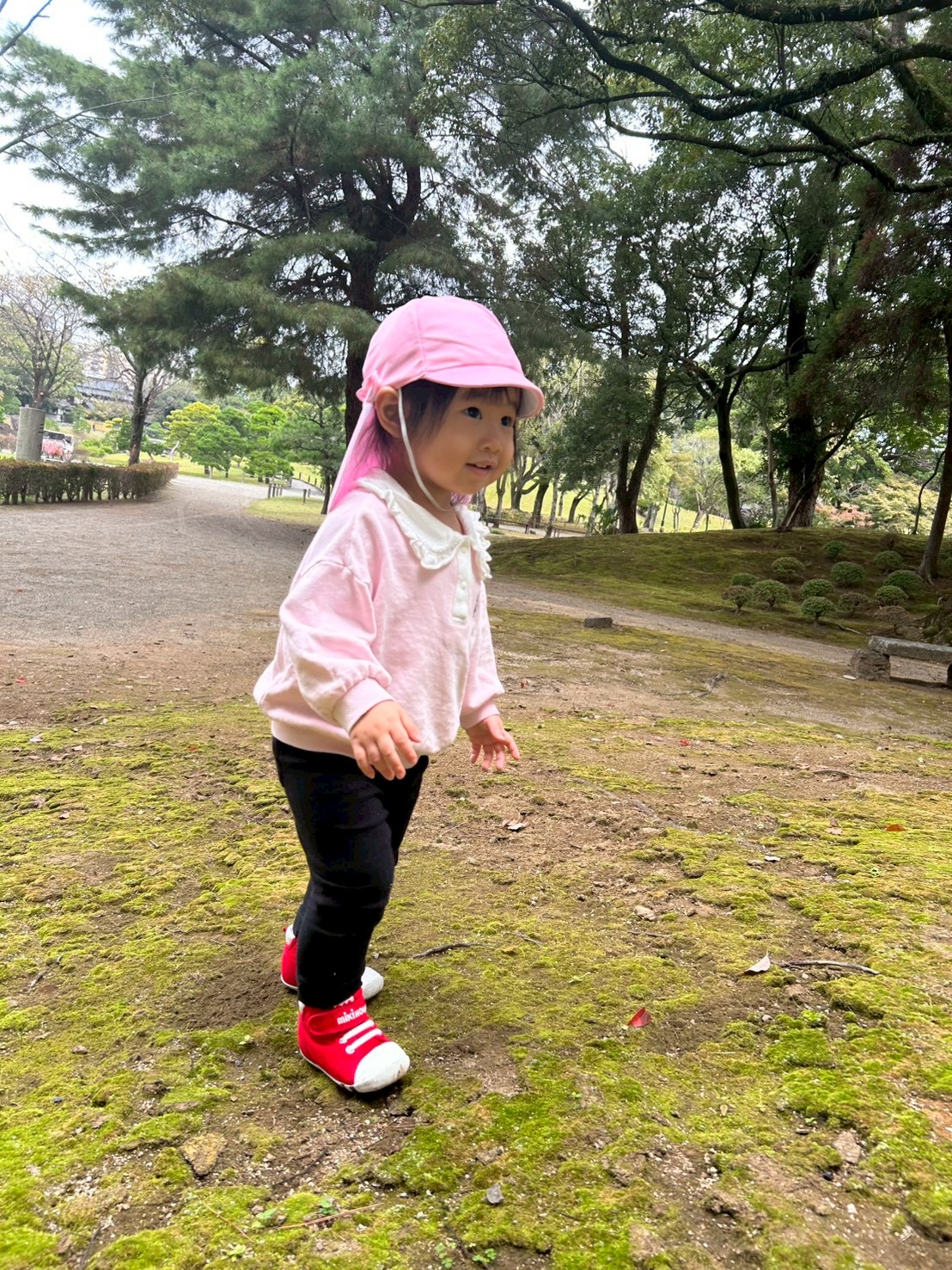 2025.11.07 水前寺公園🍑 水前寺公園にお散歩に行きました。 水前寺公園にあるお山に行き、お山登りをしました。 「自分で下りれたよ」満足‼︎☺︎ 遊びの中で達成感を味わうこと大事ですね。 私も挑戦するよーー‼︎ お外で歩くのも上手になりました。 砂利の感触っておもしろいねーー! 手触り、音、手先で色々な刺激を感じてますね。 「赤い葉っぱみつけたよーー秋みーつけた🍂」