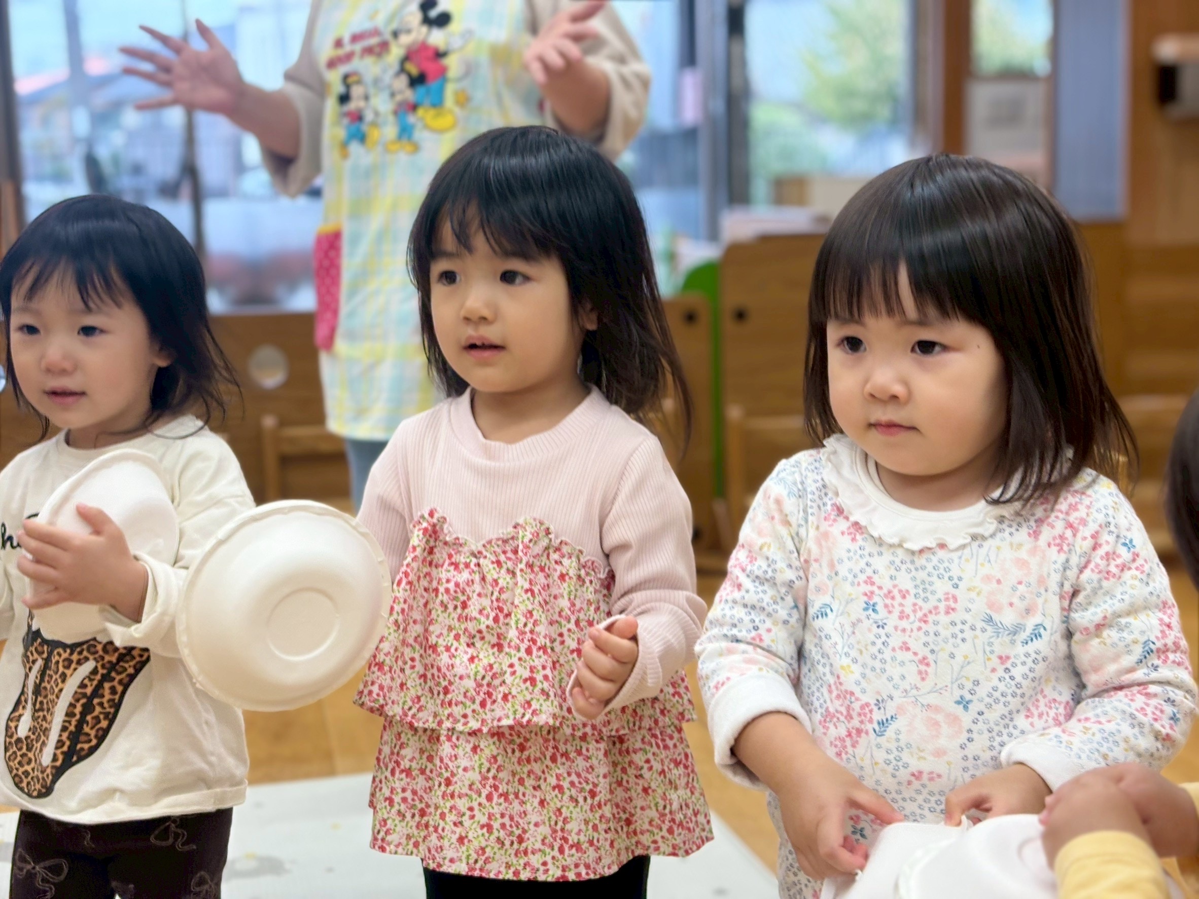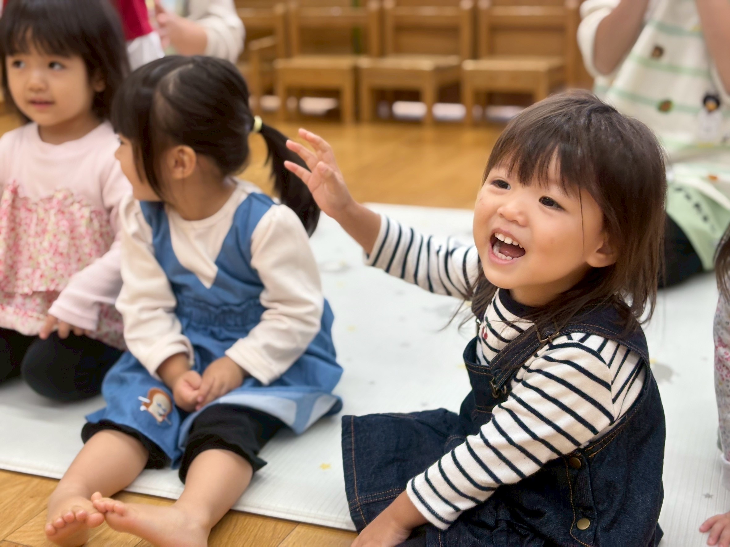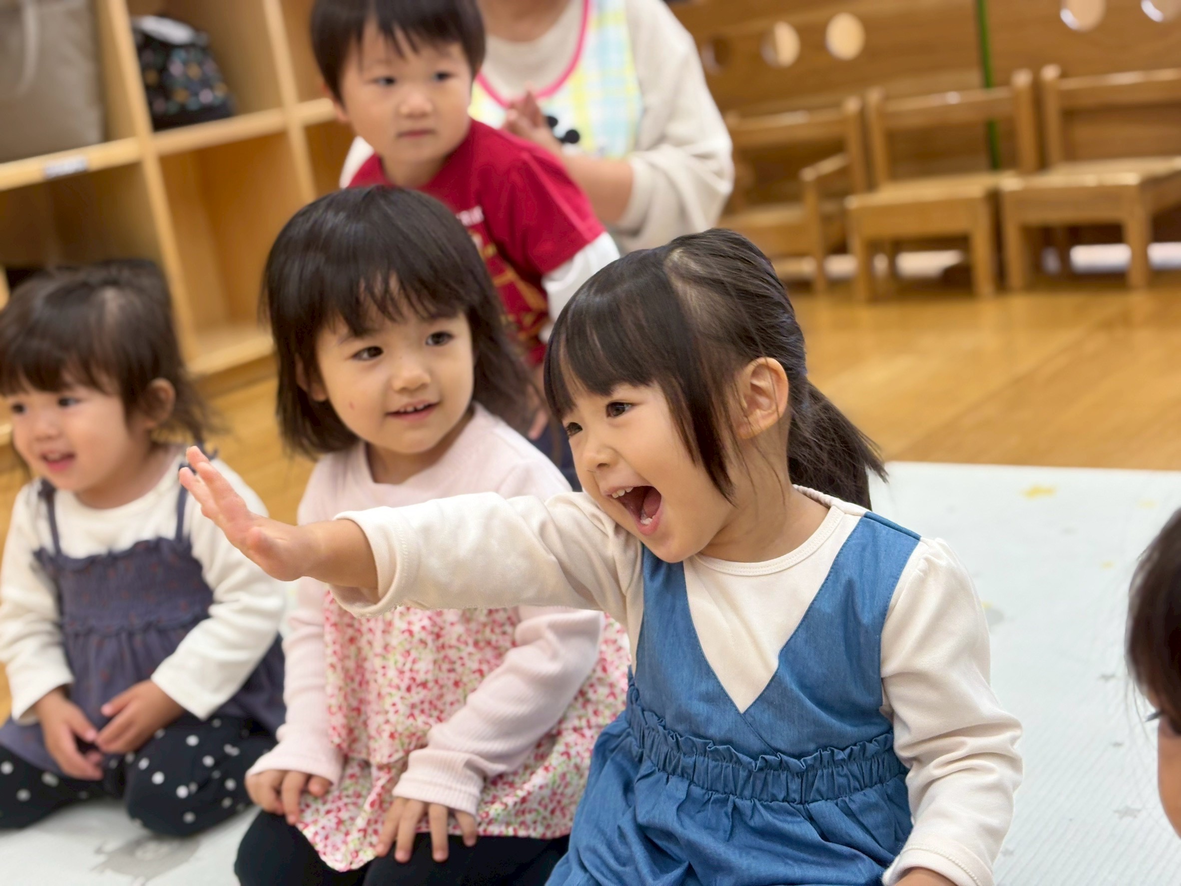 2025.11.11 リトミック教室🌸 今日はリトミック教室でした🎶 リズムに合わせてお返事をしていきます🎹 「〇〇ちゃん」 「はーい!」 「あらすてきなおなまえね♪」 元気いっぱいお返事をしていました🌈 音楽に合わせて、タンバリンを叩いたり、振って音を鳴らすことを楽しんでいました🎶 ピアノの音に合わせてゾウやウサギ、カエルなど動物の模倣をしていきました🐘 自由に体を動かし、自分なりの表現を楽しんでました😊 次のリトミックも楽しみだね✨