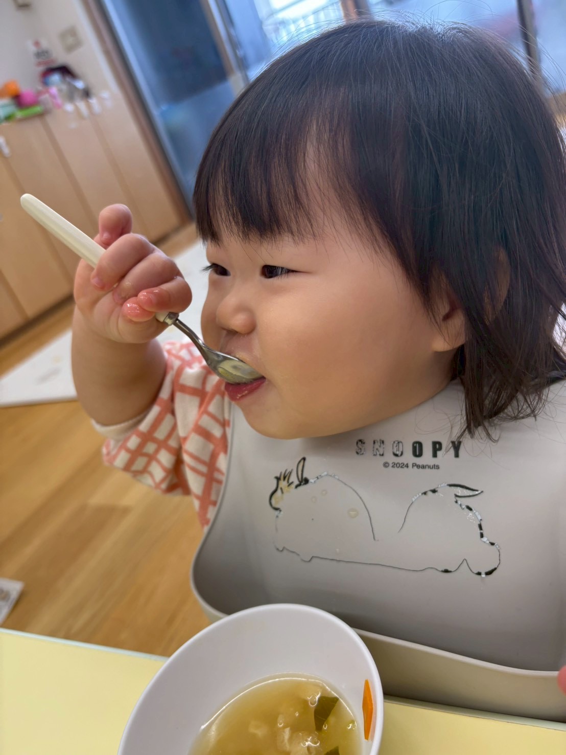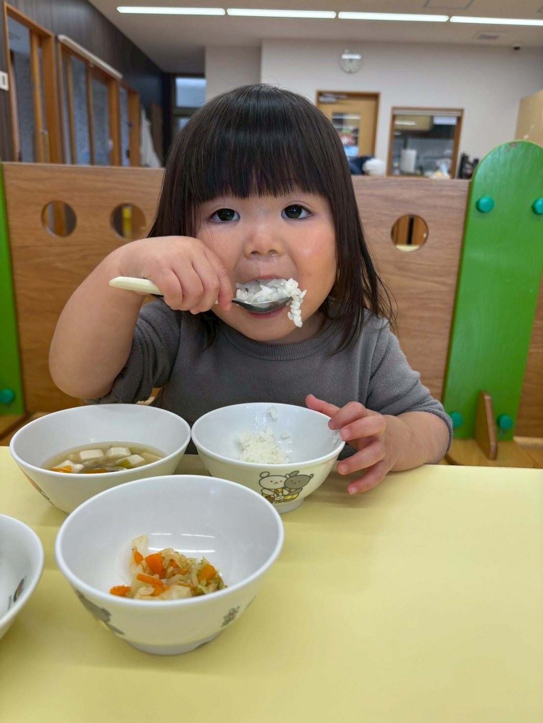 たくさん遊んだあとはお腹も空いてたくさん食べました。食べるのも上手でしょう🍽️