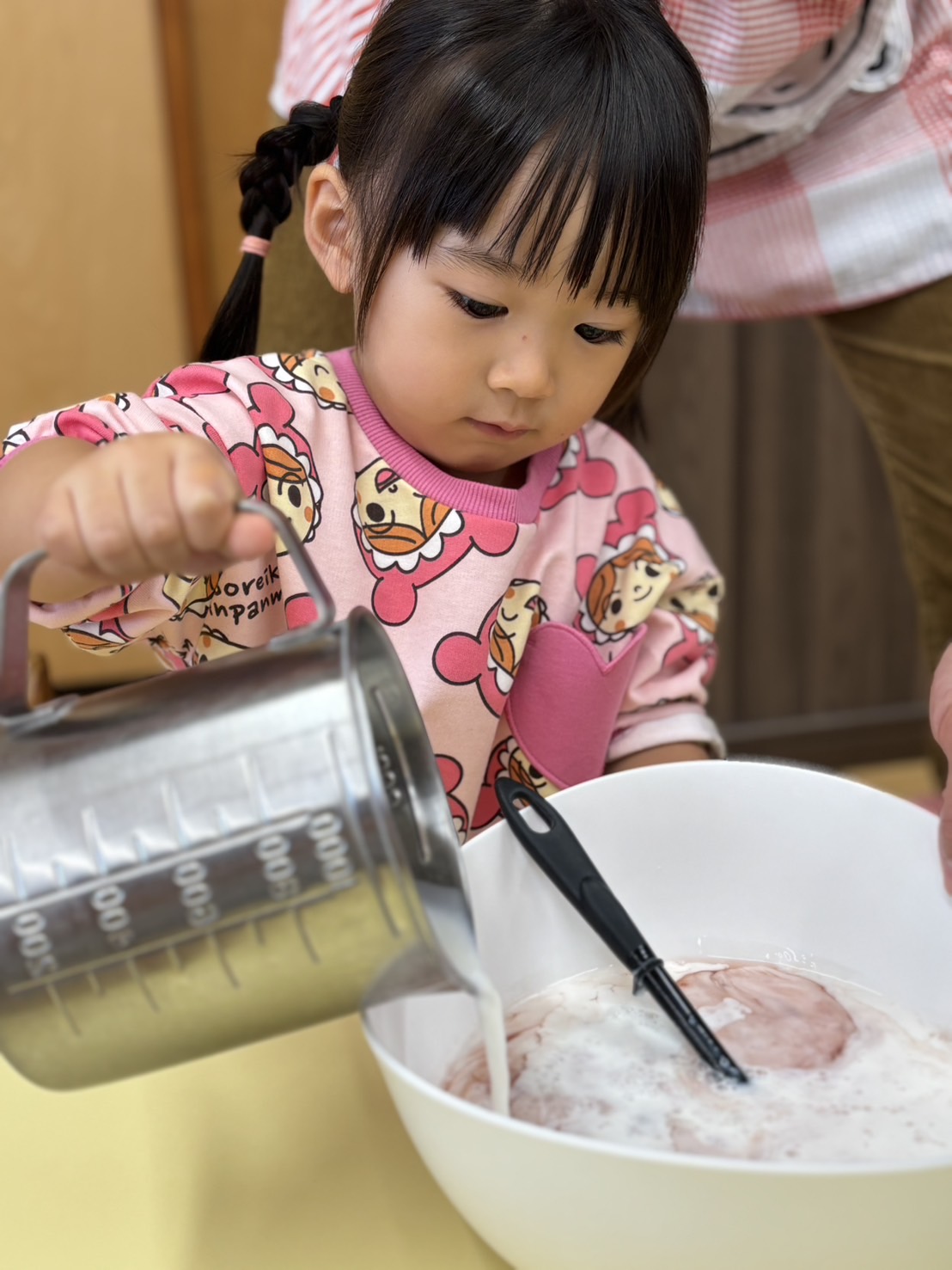 出来上がると喜びの舞を踊ったり、「美味しそうだね😋」と言い、食べるのを楽しみにしてました😊