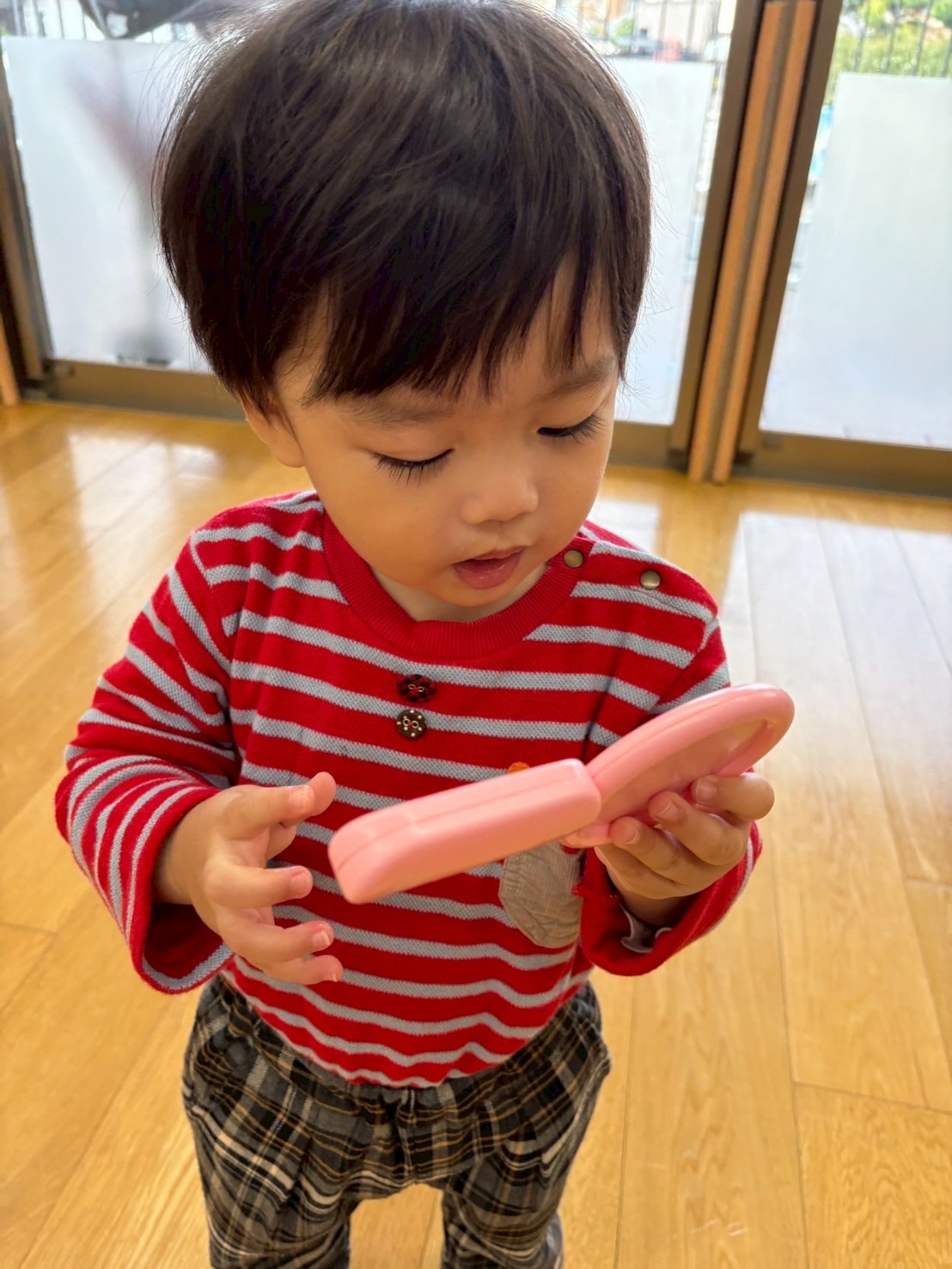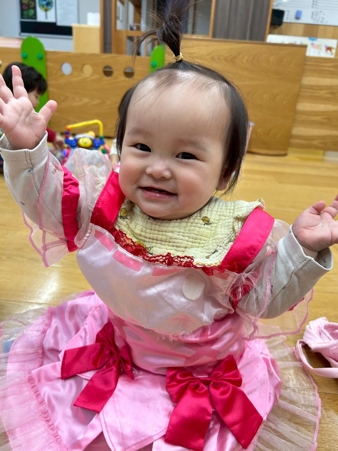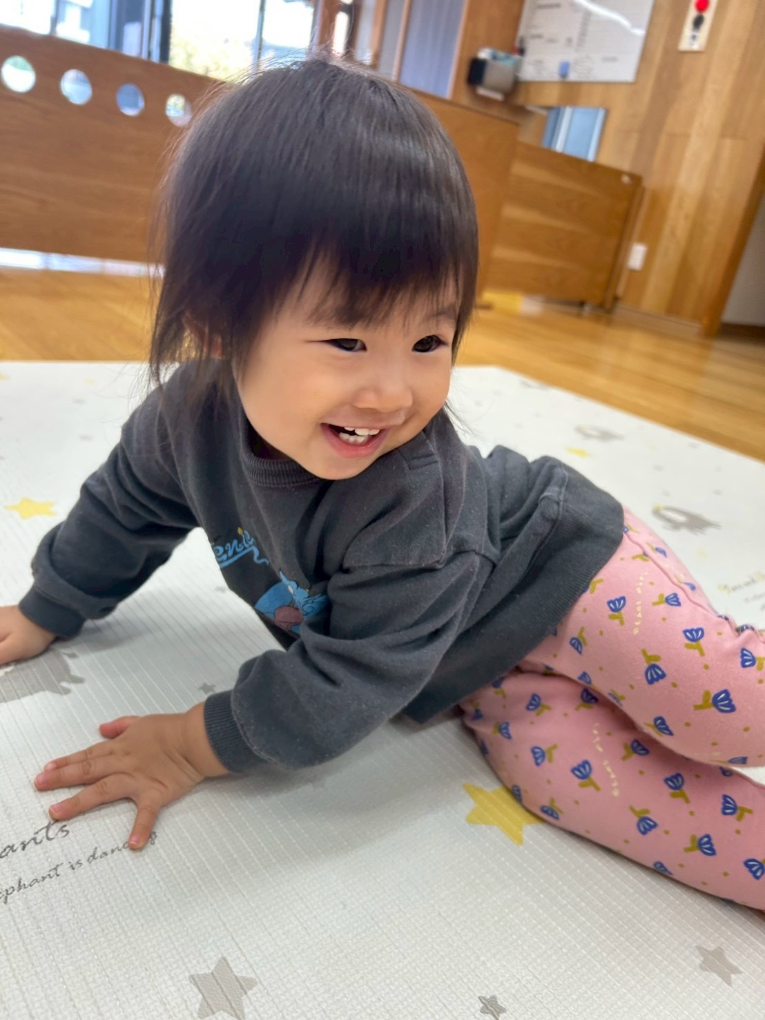 絵本に手を伸ばし、アムアムと食べる真似をするお友達です💕