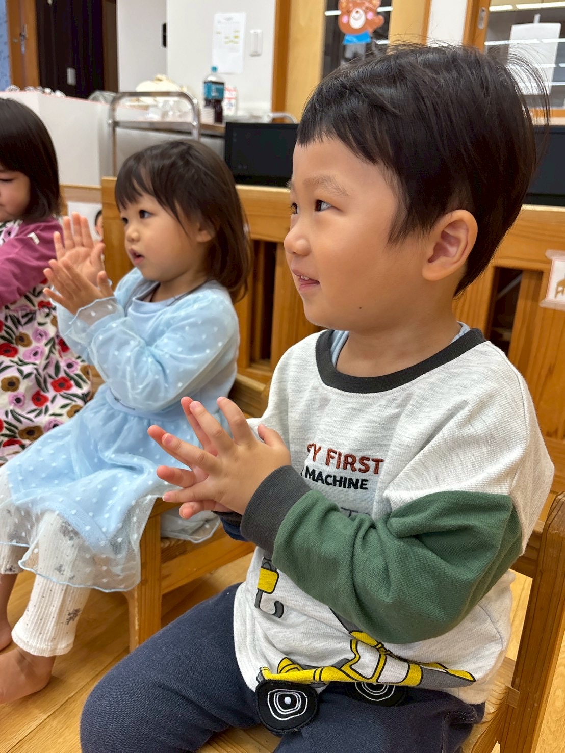 2025.12.01 in the park🛝🌸 今日は大好きな英語教室❗️😆 公園にある乗り物の単語を習いました🛝😊 公園にある遊具の名前を振り付けで覚えていきます♪ swingはブランコ✨ ブランコの動きをしながら単語を言うと 楽しく覚えられます😊❗️ sandbox は砂場遊び⛲️ 手で砂場遊びを表現すると表情も和らぎます😊 今日も楽しい時間を作ってくれるセバスチャン先生にバイバイタッチをするさくら組さん😆 いつもありがとうございます🎵