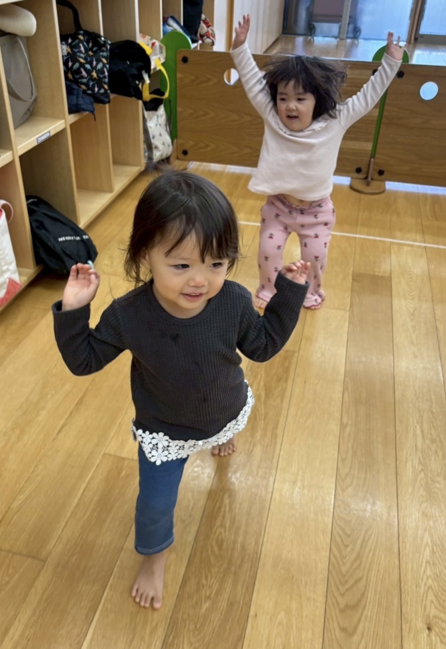 2025.12.23 リトミック🌸 今日はみんなでちょうちょに変身🦋 羽を優しくバタつかせ飛び立ちます✨ お空を楽しく飛び回ります♪ ちょうちょ、ちょうちょ🦋 お花を見つけてパタパタ😊🎵 音に合わせて表現することがとても上手でしたよ😆❗️ 笑顔も溢れ、楽しいリトミックでした🎵 体を動かした後は 曲に合わせて体を休めました😊 しっかり音を聞いて表現していたさくら組さんでした😊