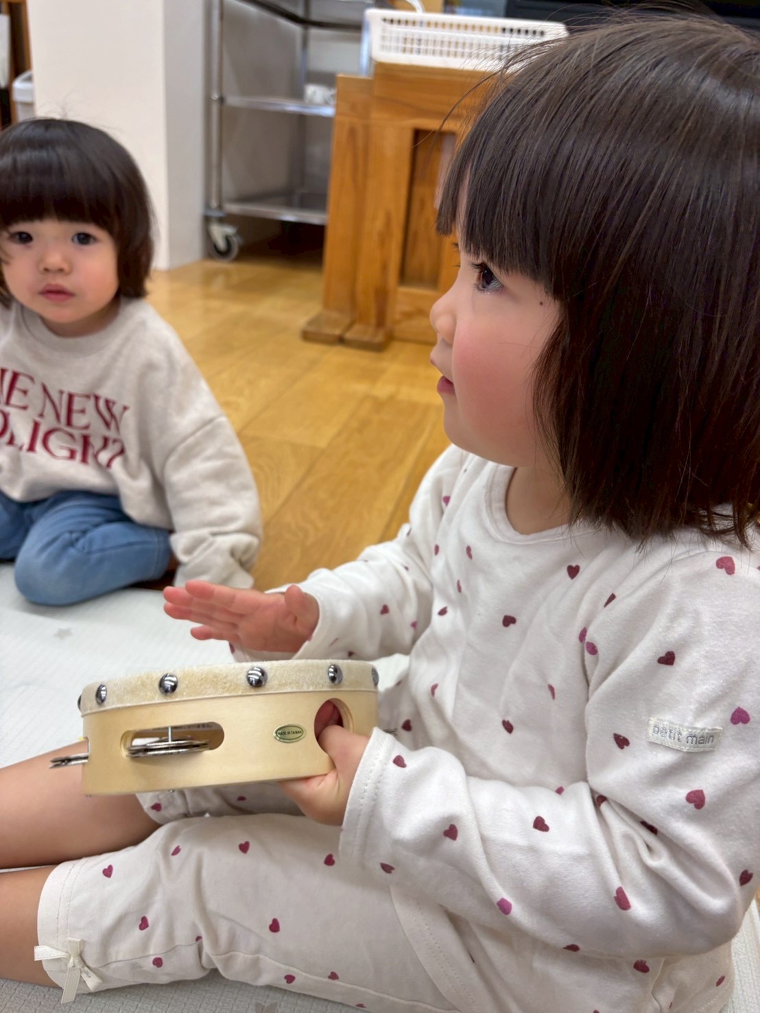 リトミックの先生が叩く様子をしっかり見て真似していました✨