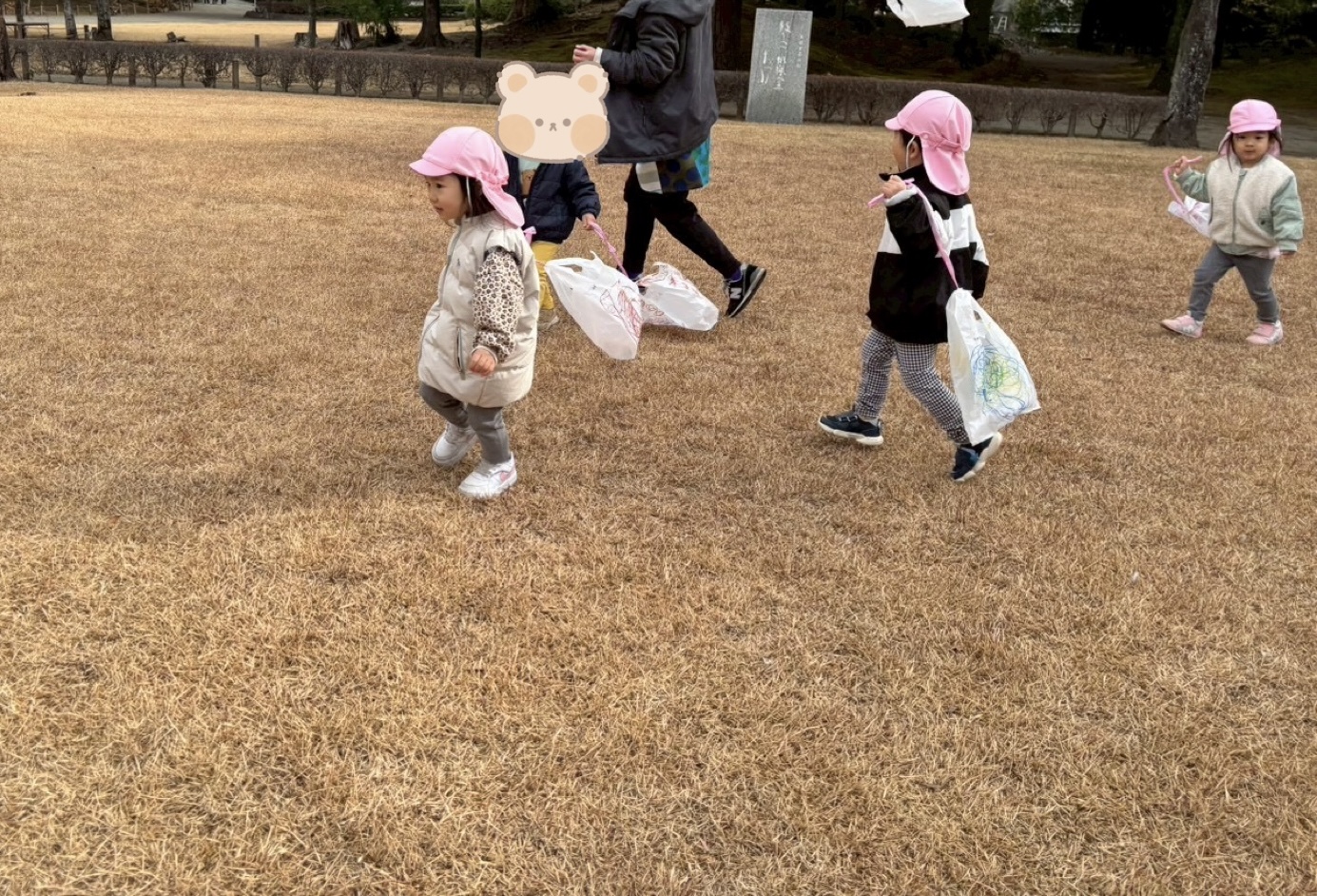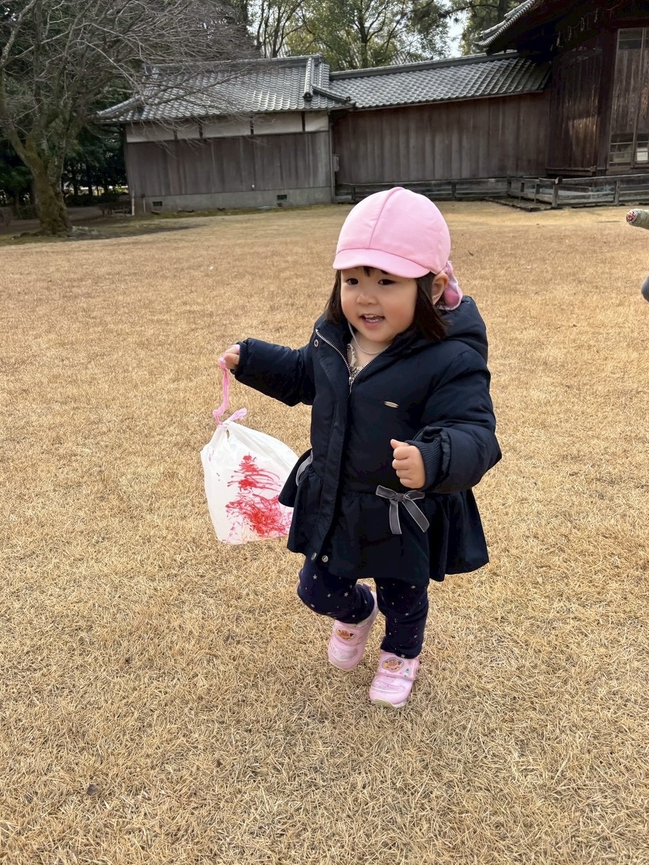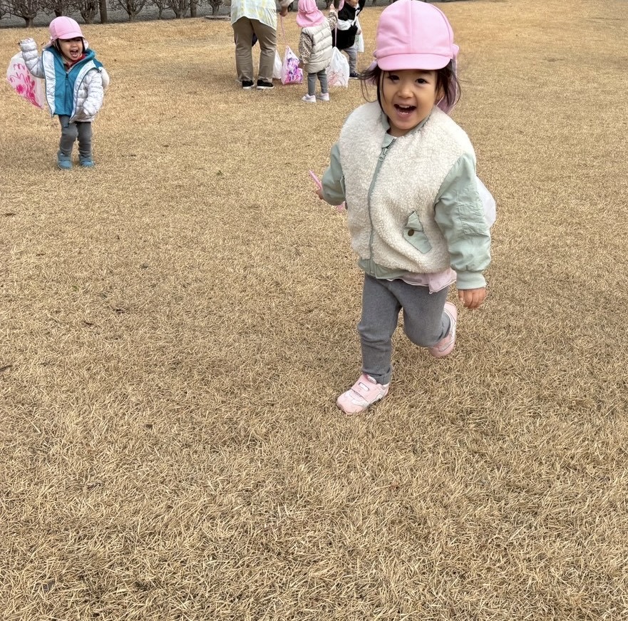 どんど焼きを見た後、広場で凧揚げをしました✨