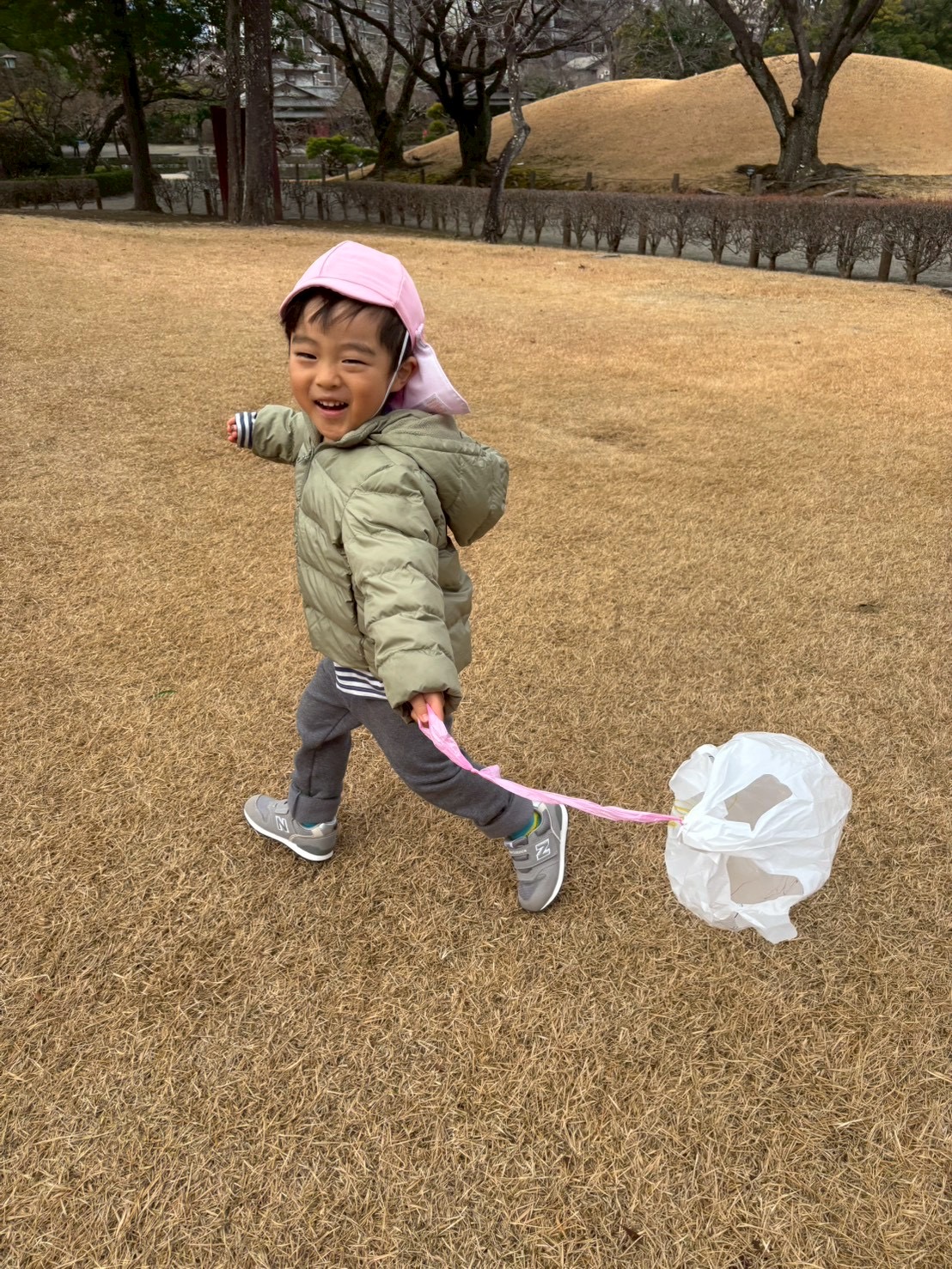 手作り凧を持って、水前寺公園までお散歩にいきました。