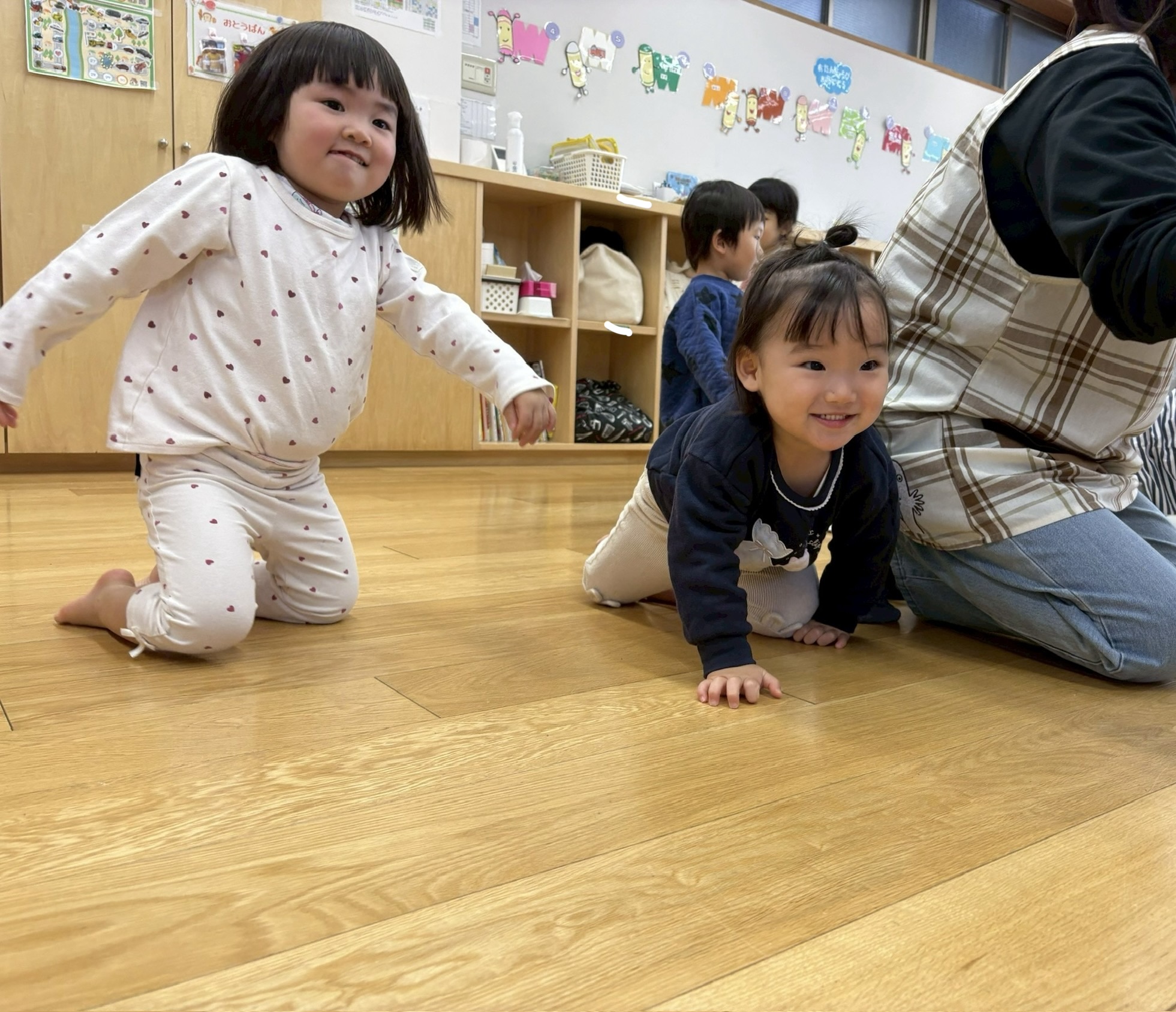 メロディーに合わせて「〇〇ちゃん♪」と名前を呼ばれると元気にお返事をしてました✨