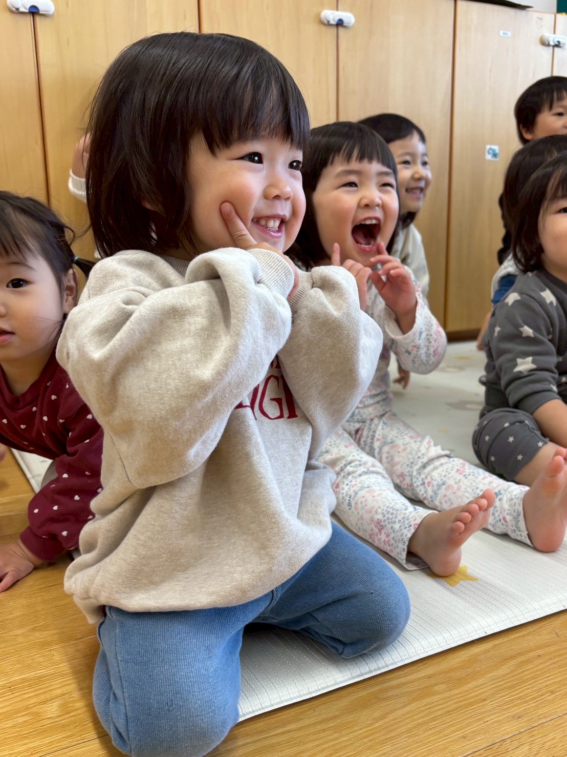 2026.01.29 誕生会🍑🌸 1月生まれの誕生会でした🎂 保育者の出し物を喜んで見ていました✨ 『だるまさんが』のペープサートをしました! 「だるまさんがニコっ😊」 みんなでお誕生日の歌を歌い、お祝いしました✨ 誕生月のお友達🎶 「おたんじょうびおめでとう🎂🎉」 これからの成長も楽しみにしてます😊