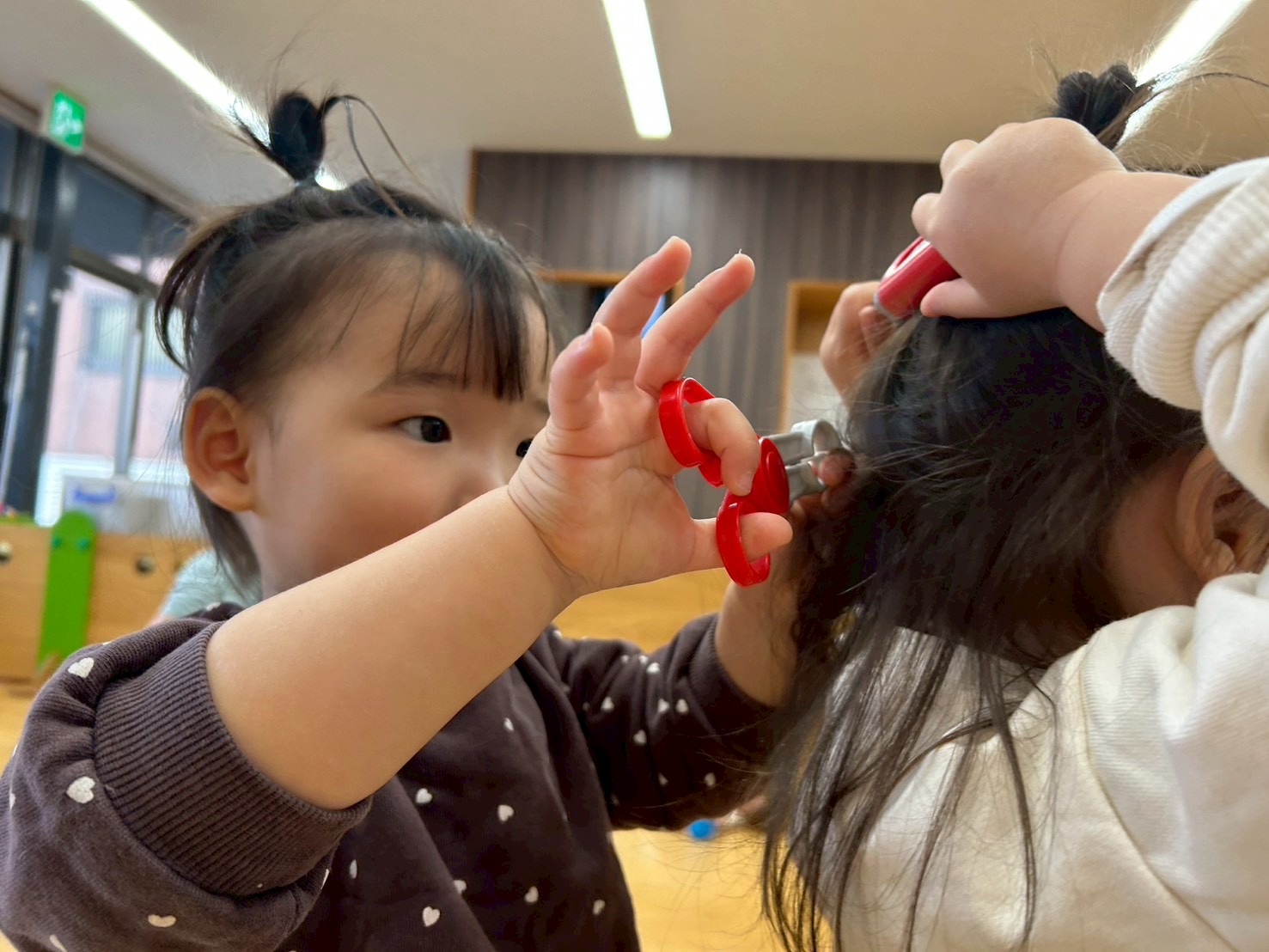 こちらは美容室ごっこ。どんな髪型になるかなぁ〜💇♀️