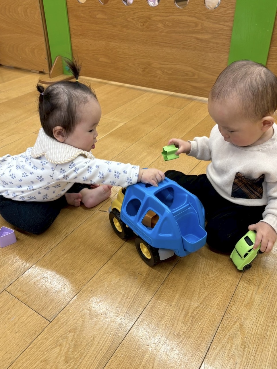 0歳児さんも型はめを楽しんでます。