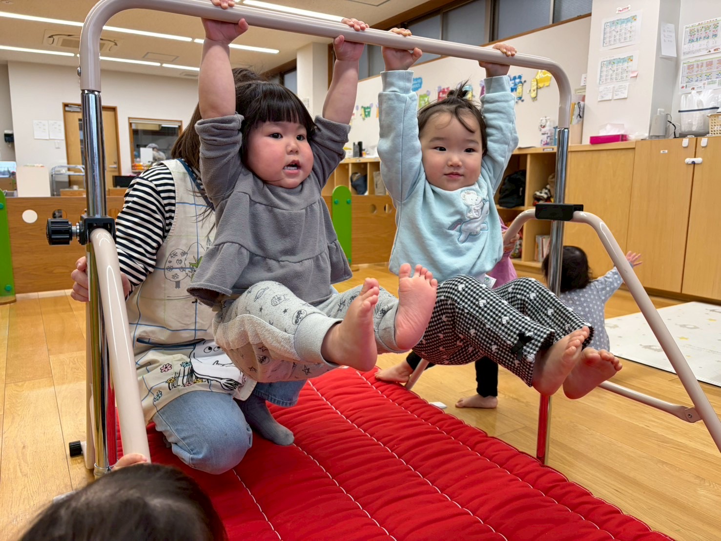 鉄棒は握る・ぶら下がる動作を楽しみながら、腕の力やバランス感覚を養うことができます☺︎