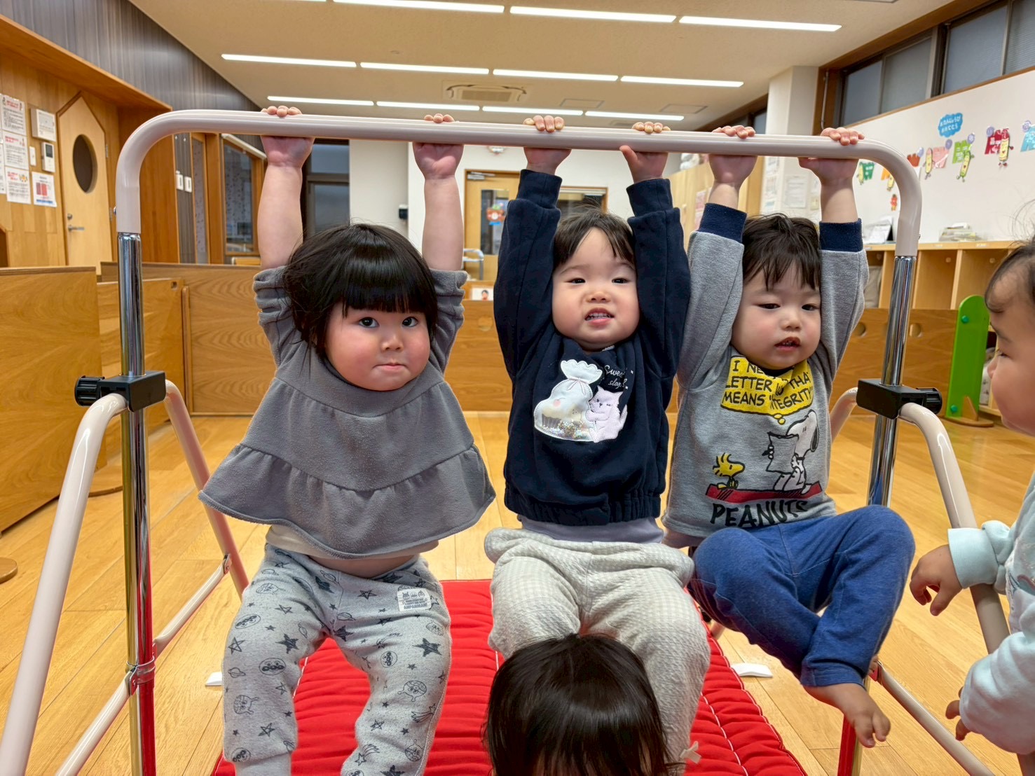 鉄棒は握る・ぶら下がる動作を楽しみながら、腕の力やバランス感覚を養うことができます☺︎