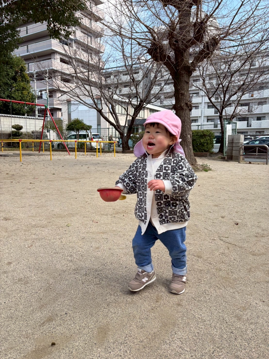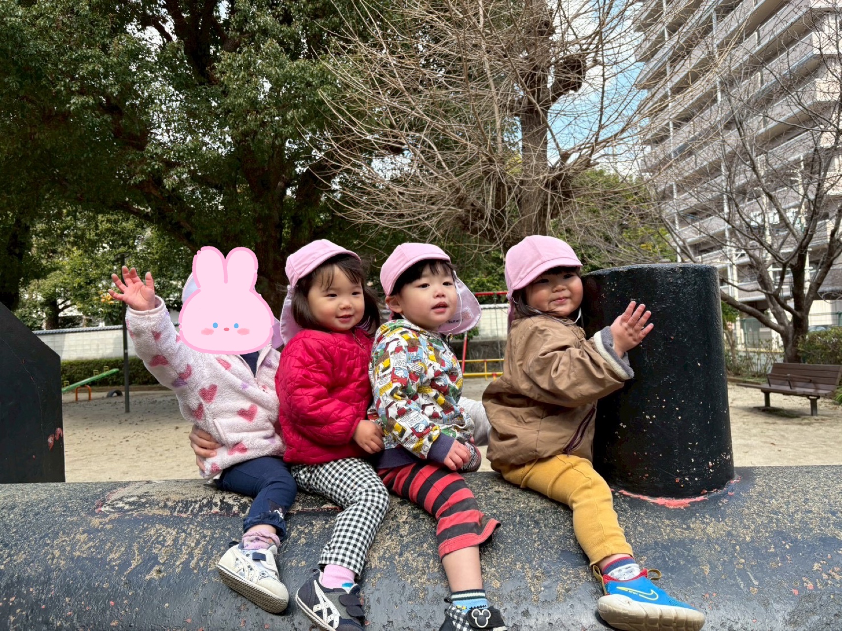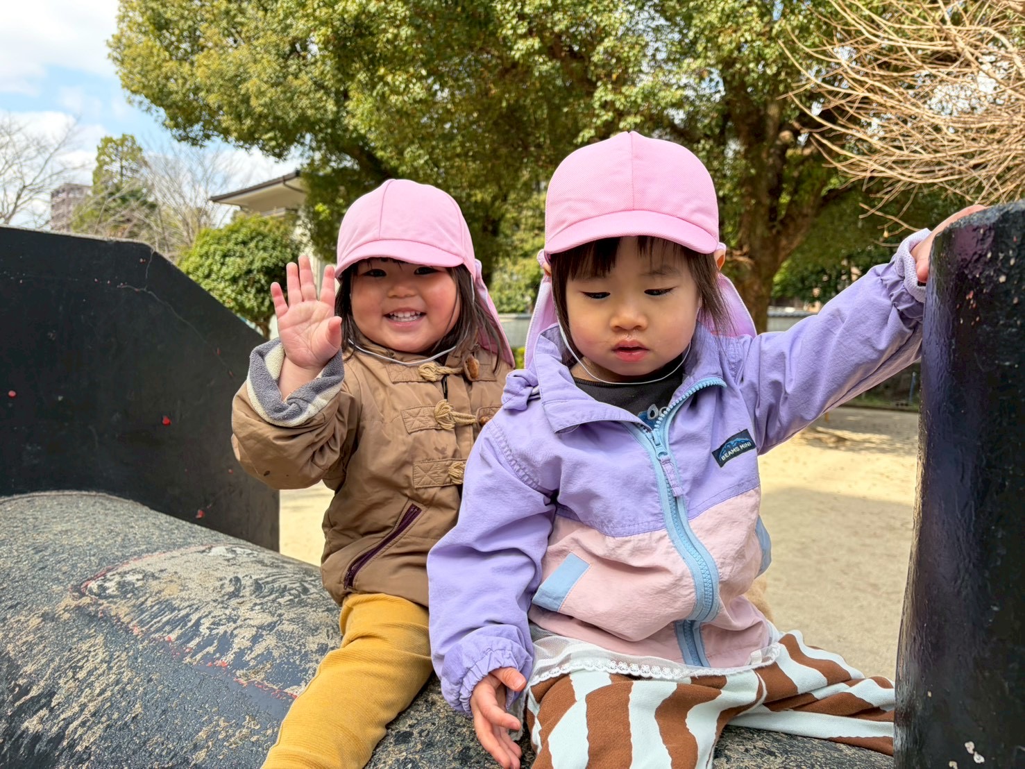 2026.03.10 汽車ポッポ〜🚂🍑 みんなの大好きな北水前寺公園へ行きました! 少し肌寒かったですが、日なたに出るとポカポカで気持ちが良いです☀️ 1人でブランコ乗れるんだ〜 見て見て〜 トンネルもくぐってみたよ! スコップの中身が落ちないように、、慎重に慎重に、、、 0歳児のお友達もたくさん歩きました! 溝や段差もお手の物!しっかり乗り越えます👏🏻👏🏻 歩くのって楽しいな〜💕💕 最後は汽車の上でポーズ📸 今日も楽しかったな 明日もお散歩行こうね〜