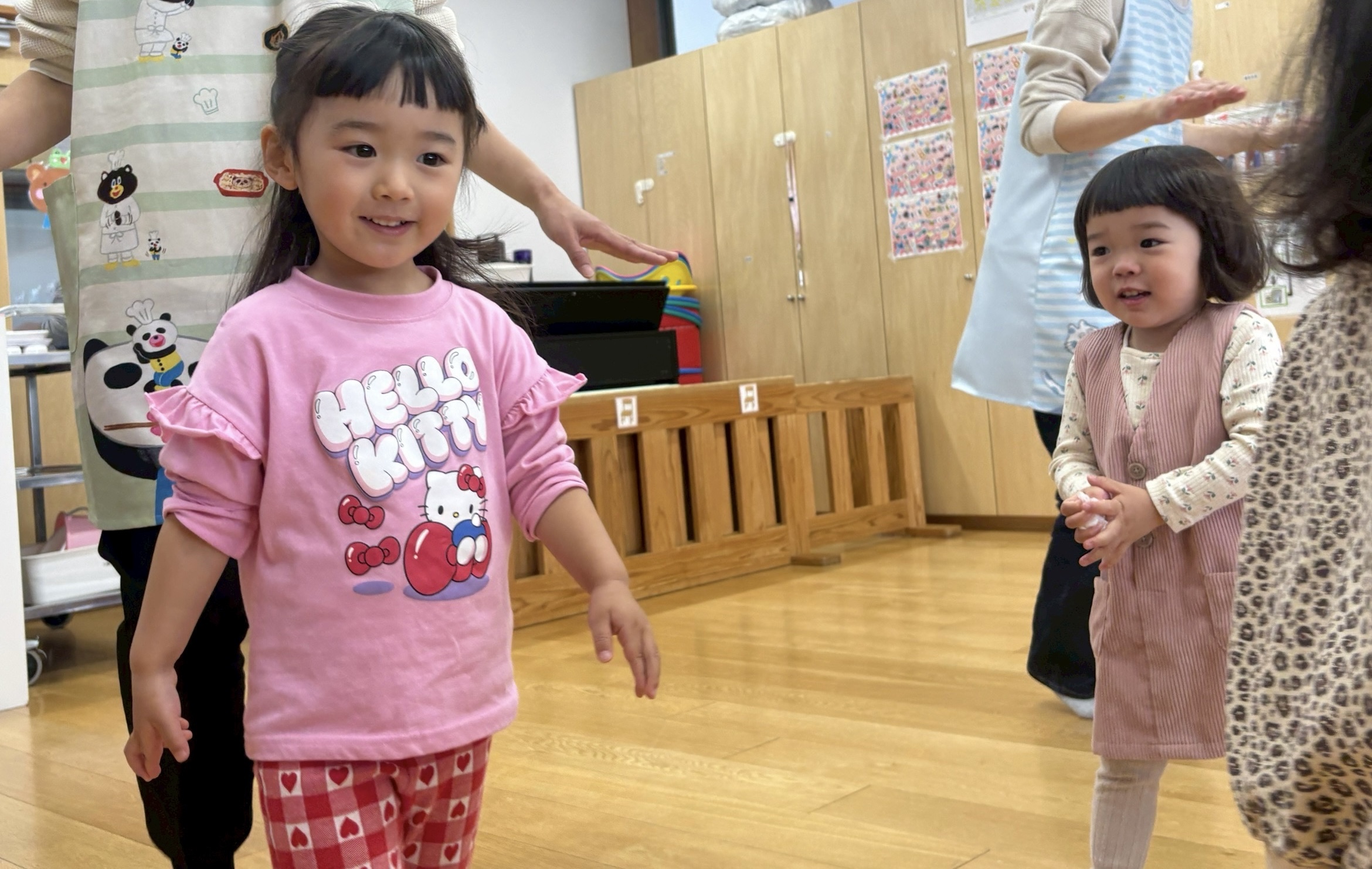 『おもちゃのチャチャチャ』に合わせてタンバリンを叩いていきます🥁
